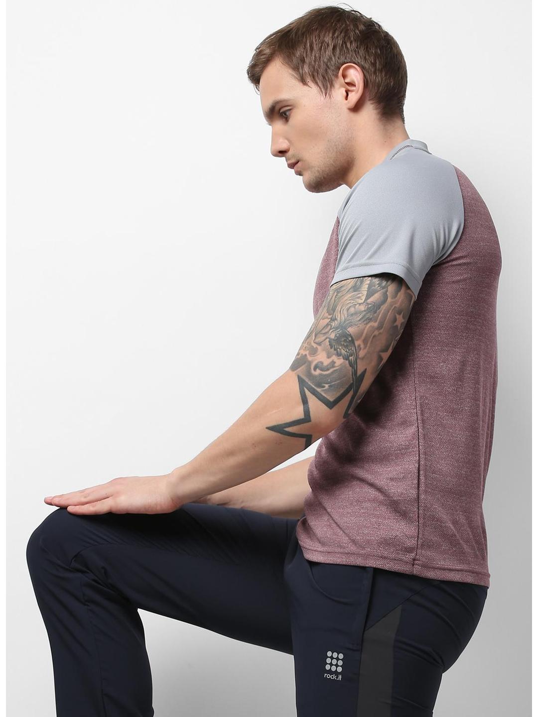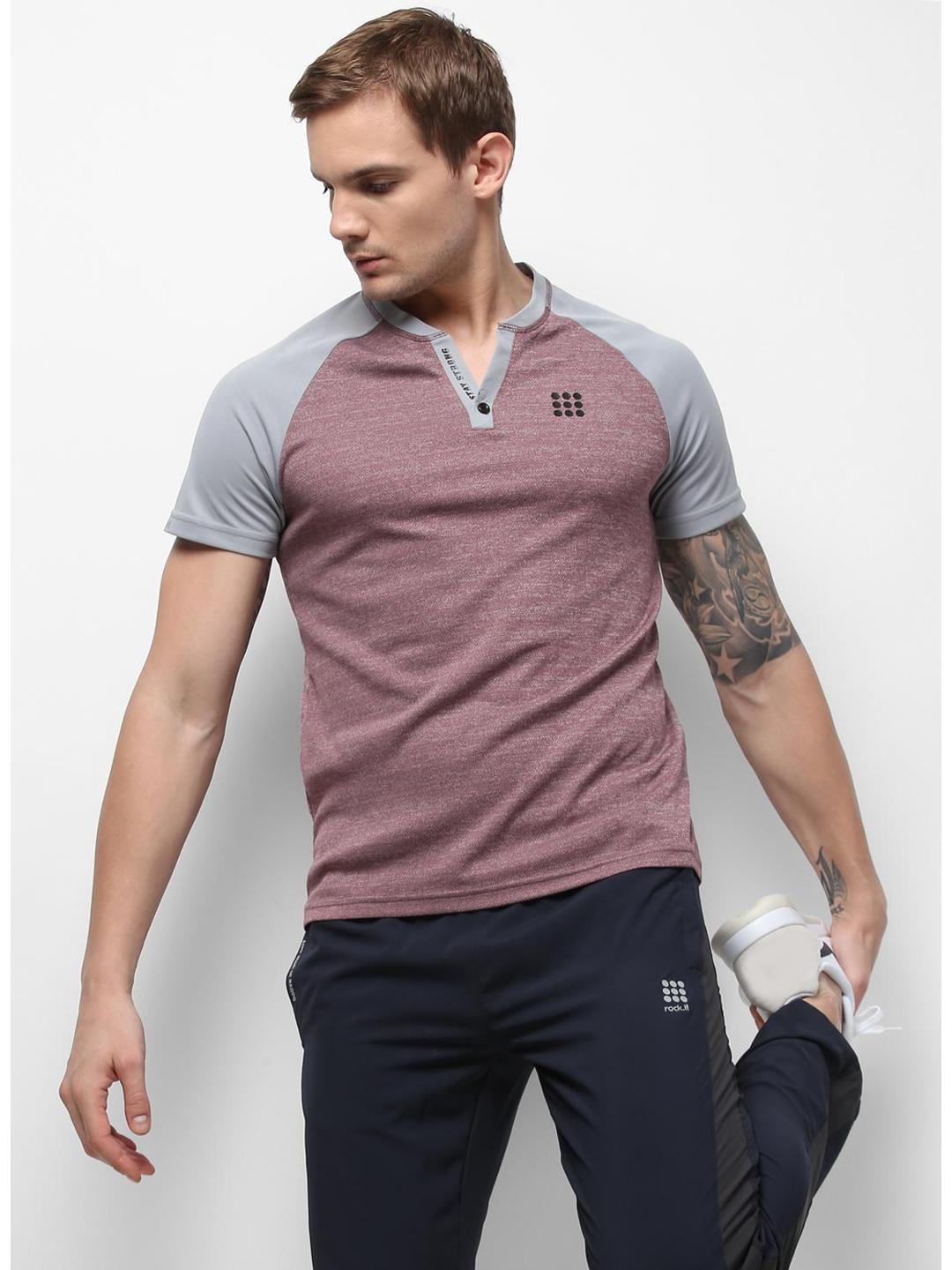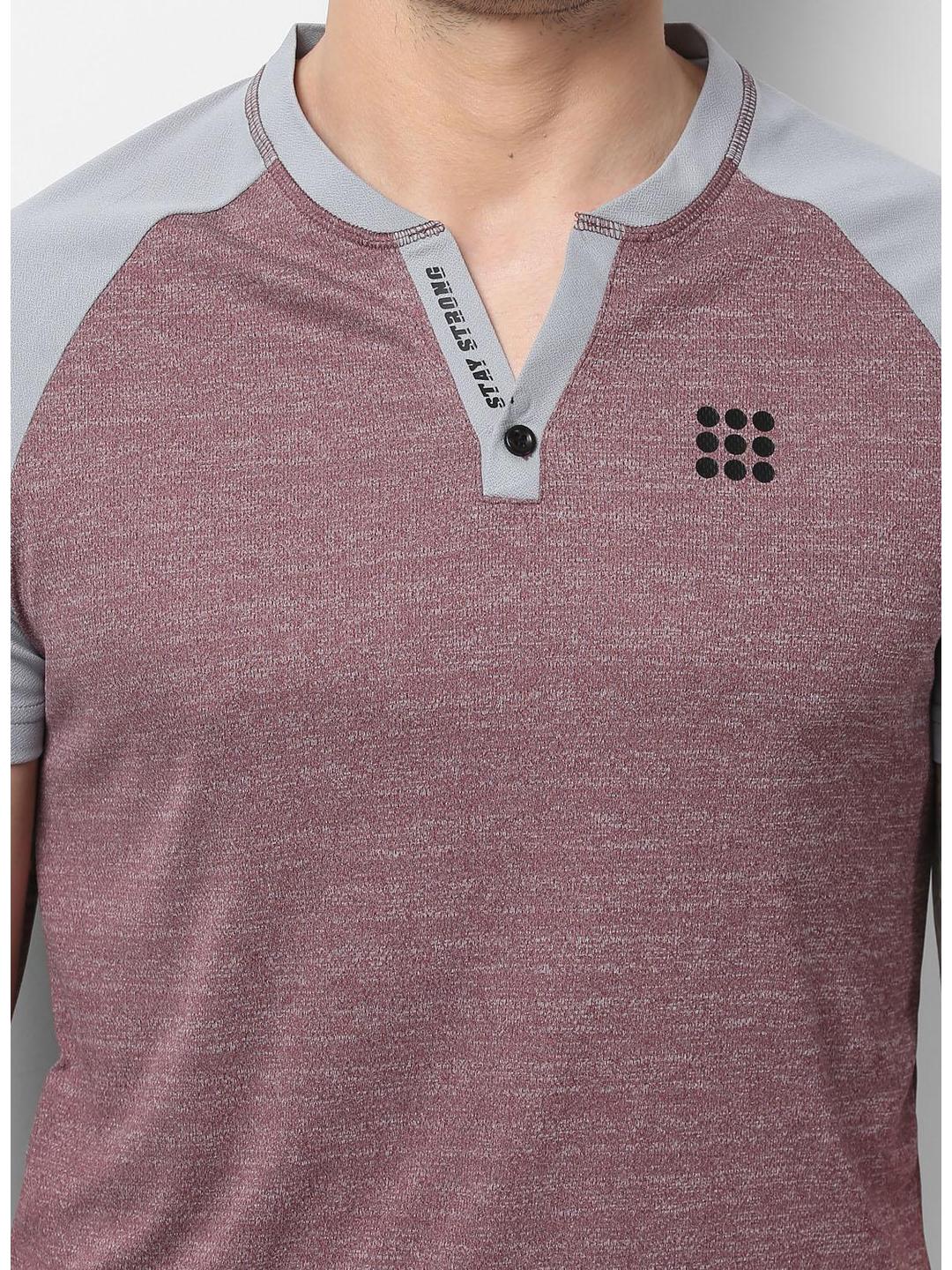 - Men Grey Rust V Neck Smart Fit T-Shirt