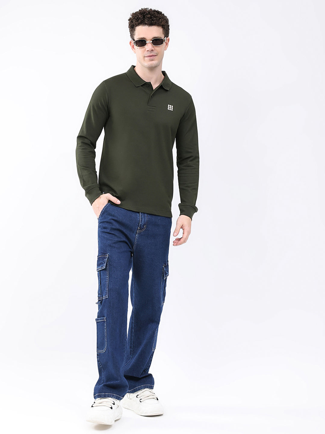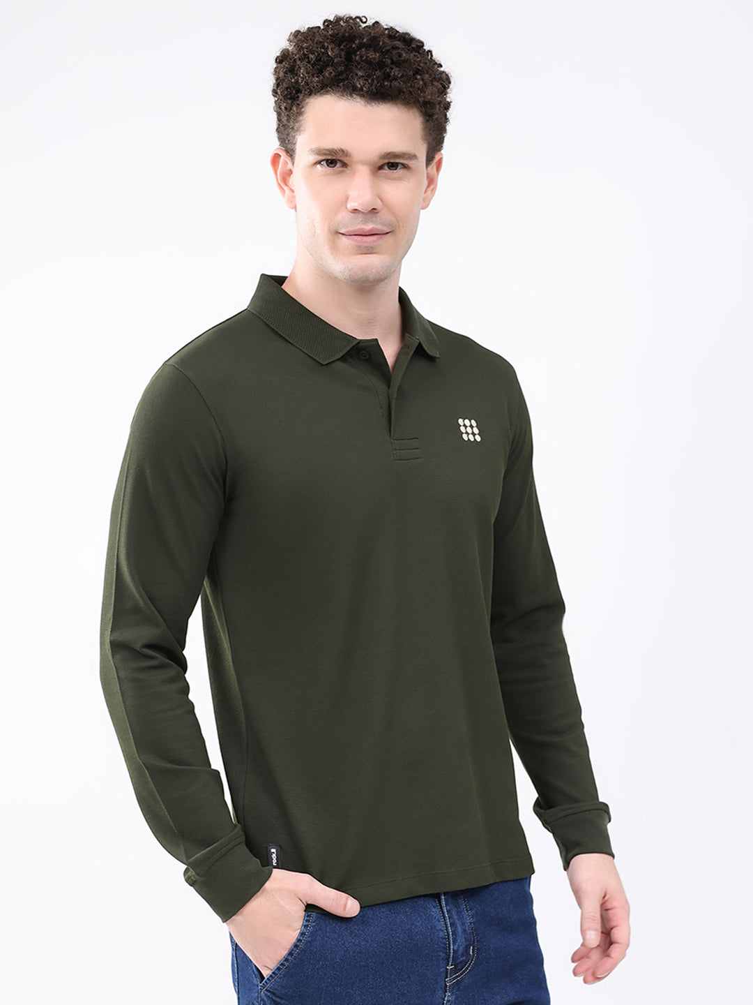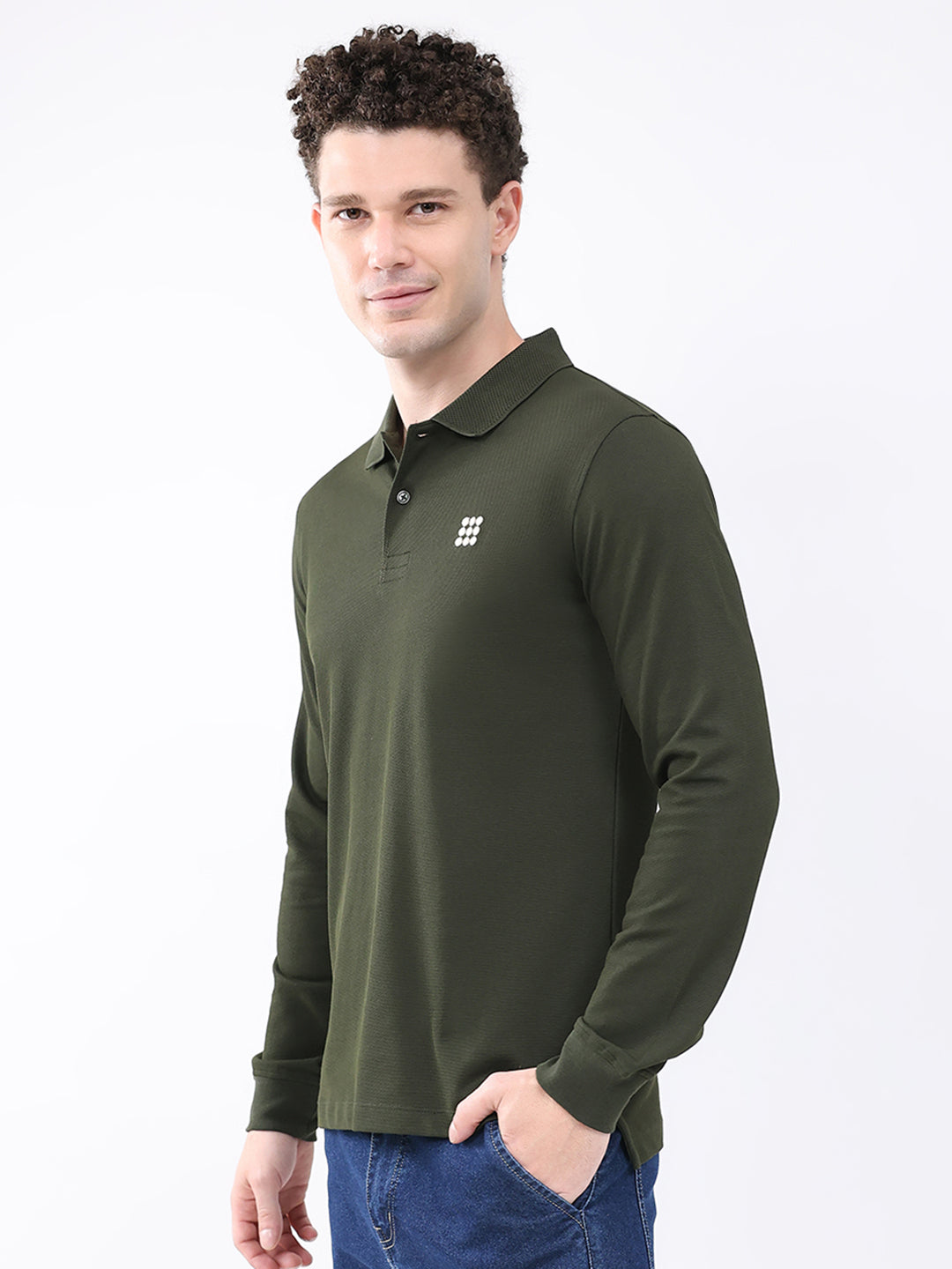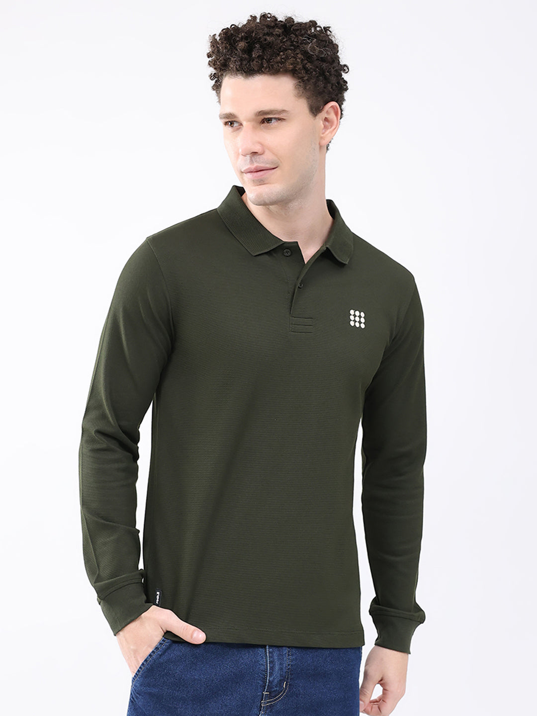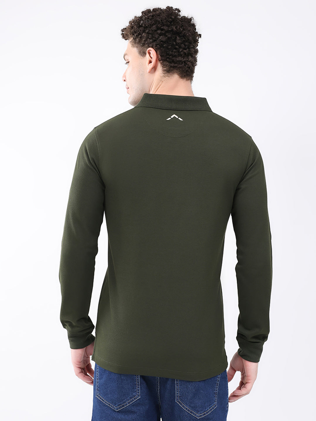 - Men Olive Solid Collar Full Sleeve Winter T-Shirt
