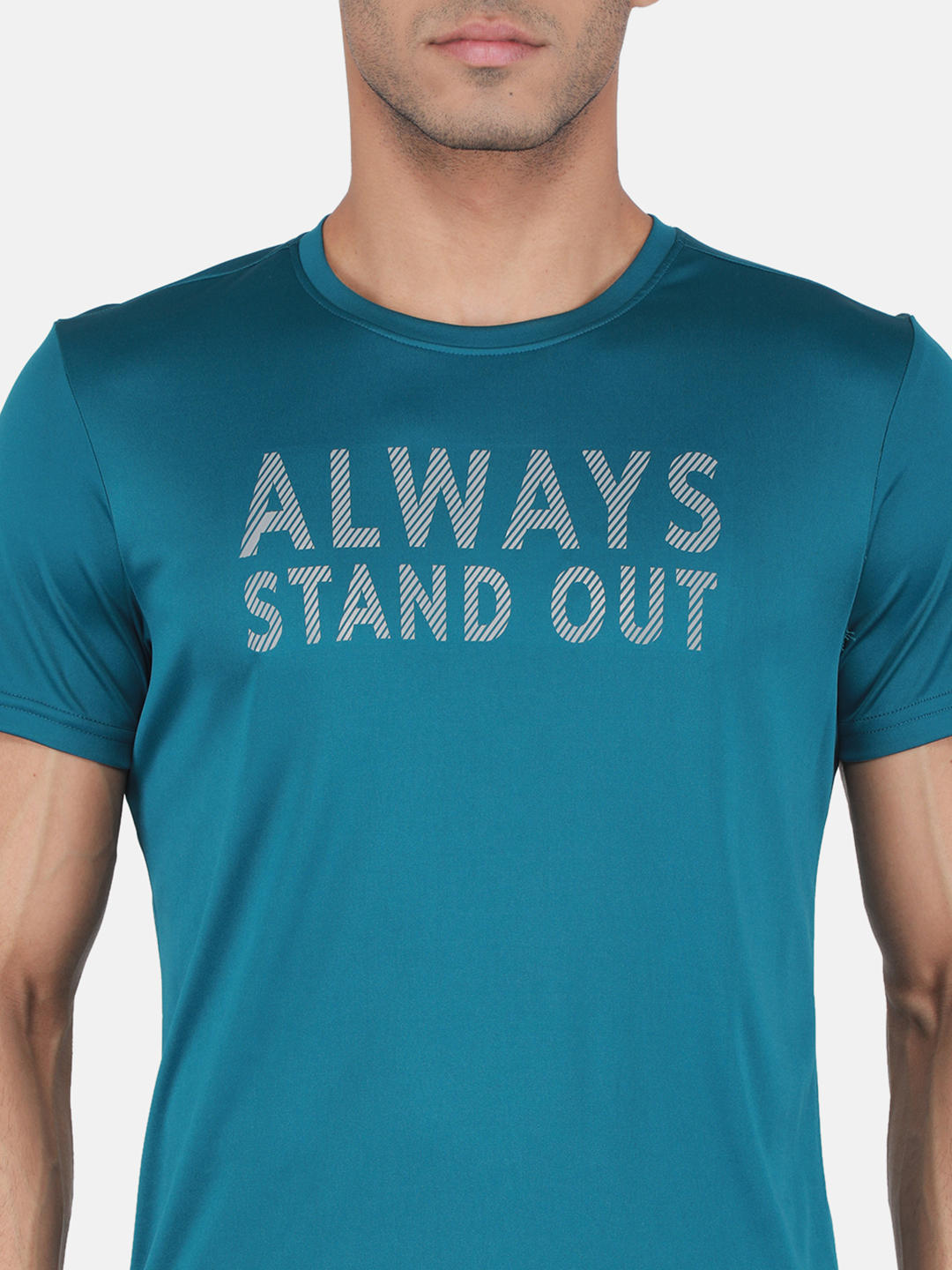 - Mens Polyester Blend Teal Printed Round Neck T-Shirt