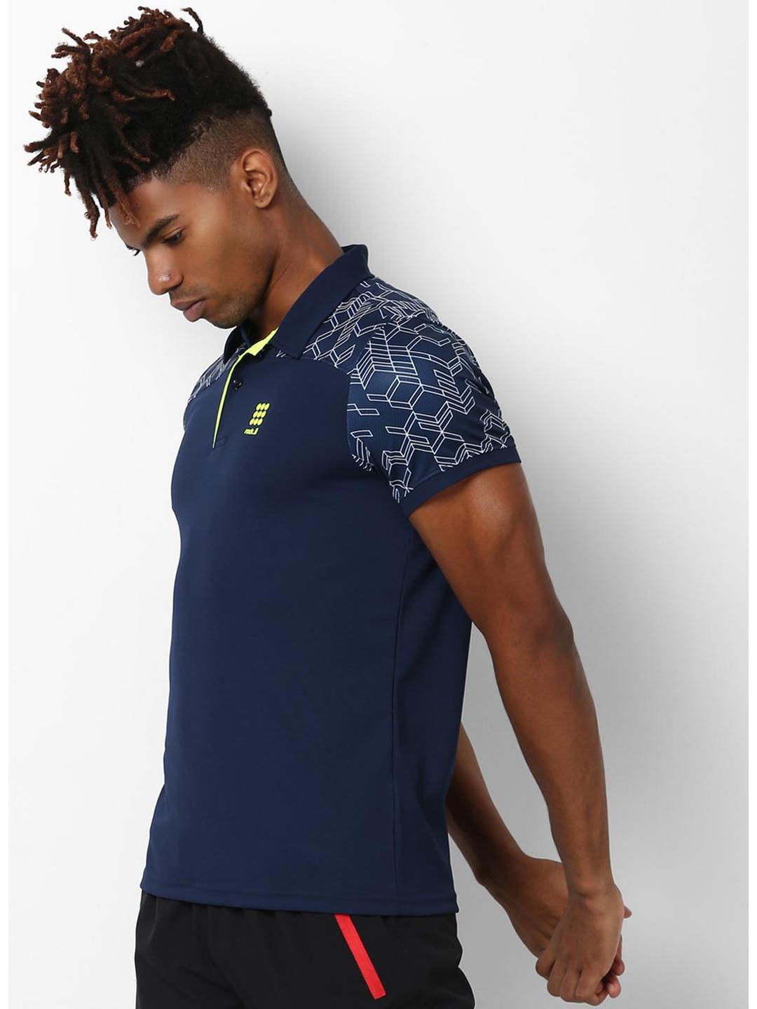 - Men Navy Blue Collar Smart Fit T-Shirt