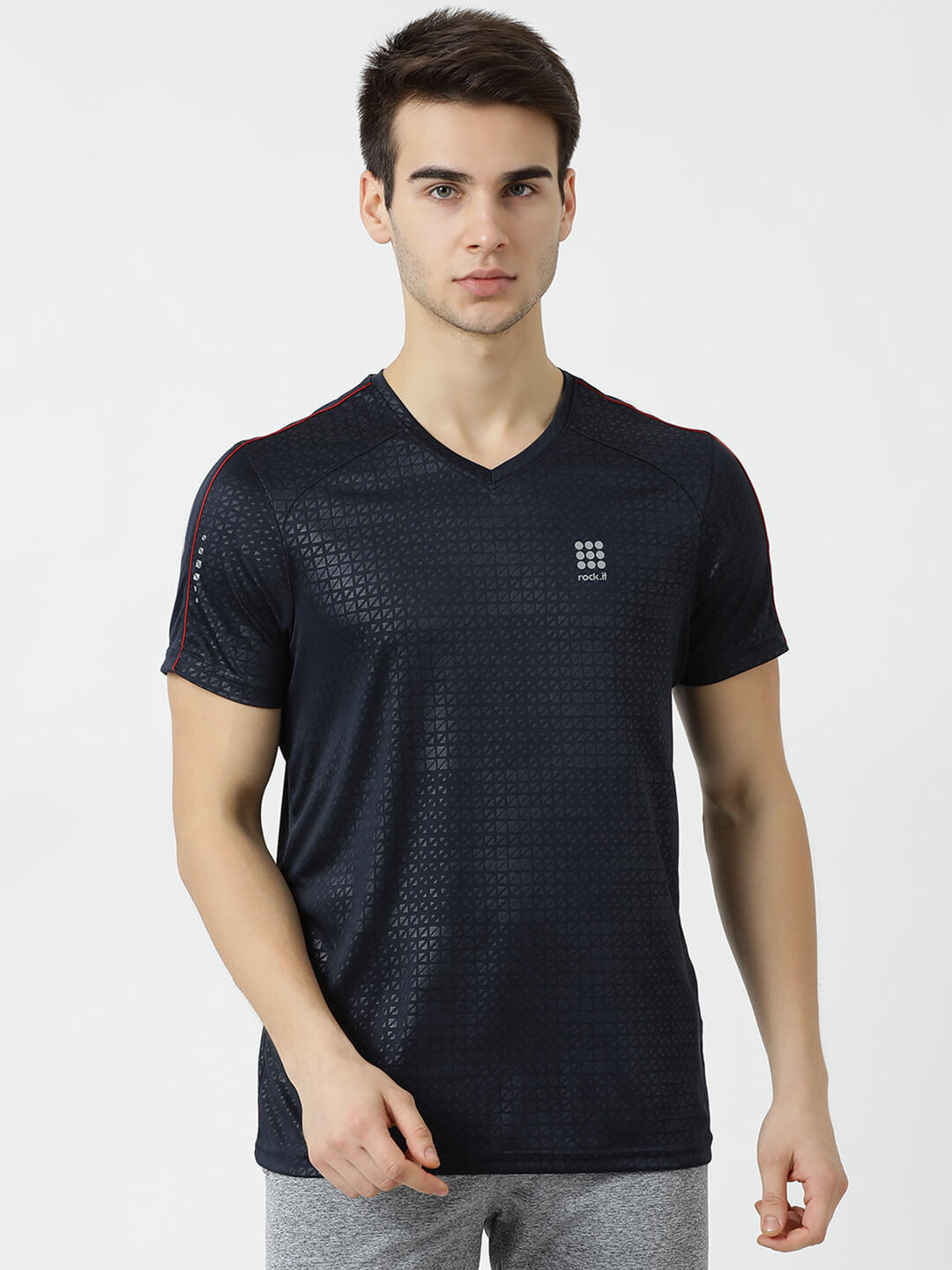 - Men Navy V Neck Regular Fit T-Shirt