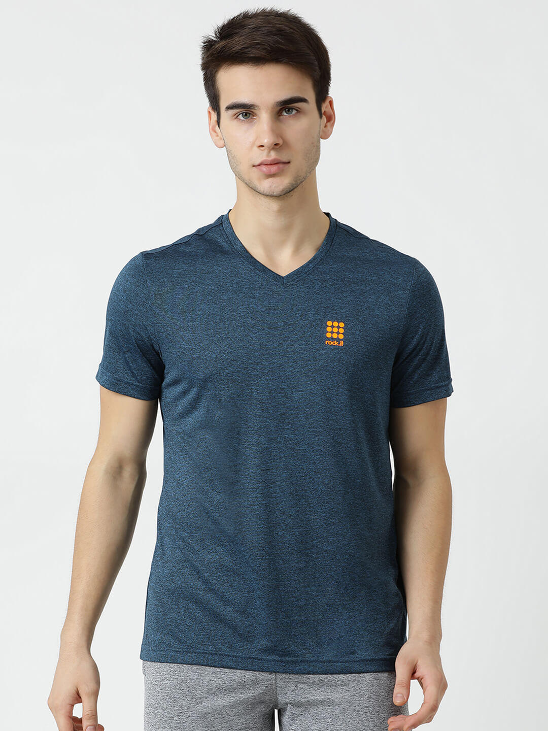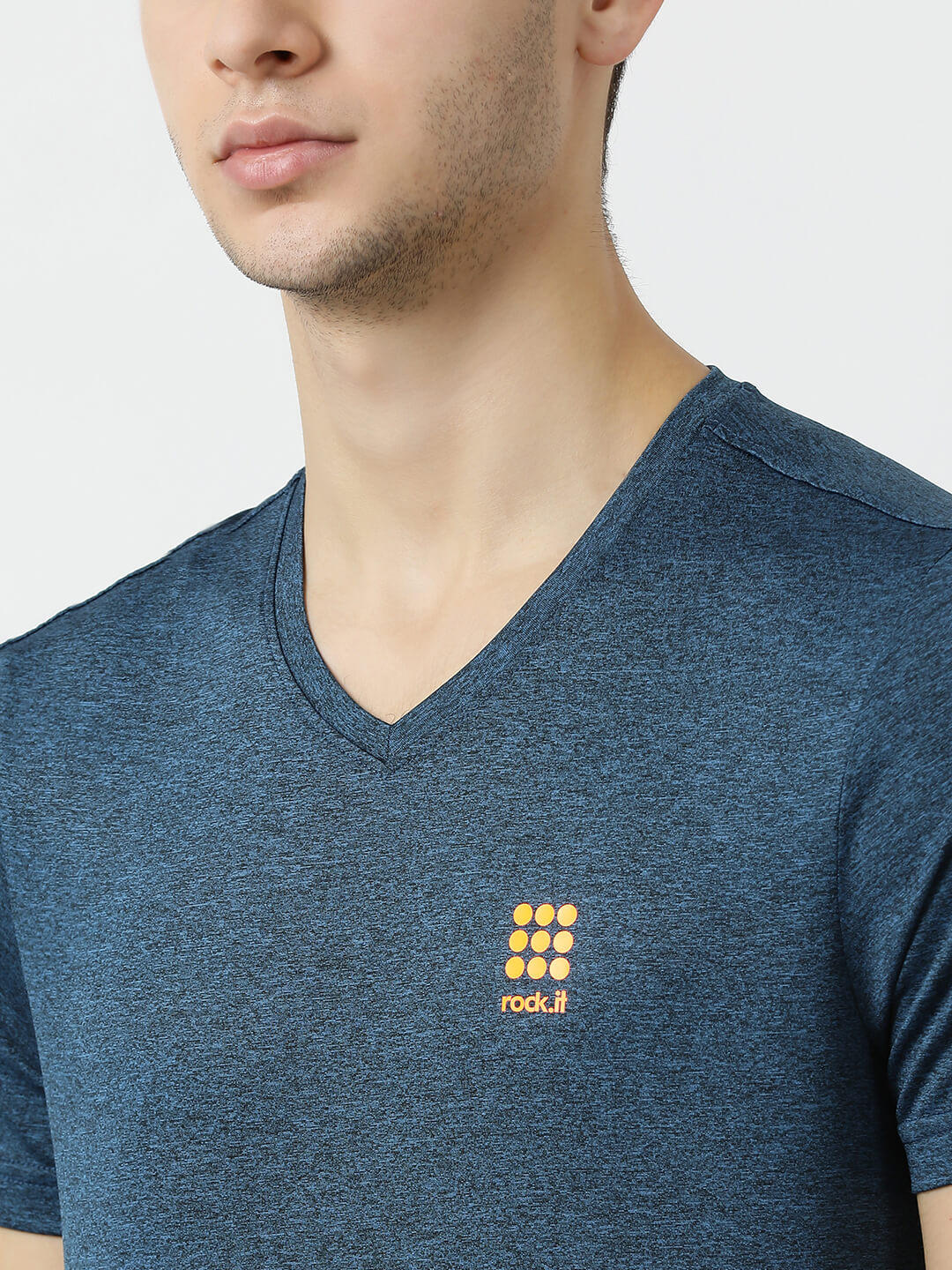 - Men Navy V Neck Regular Fit T-Shirt