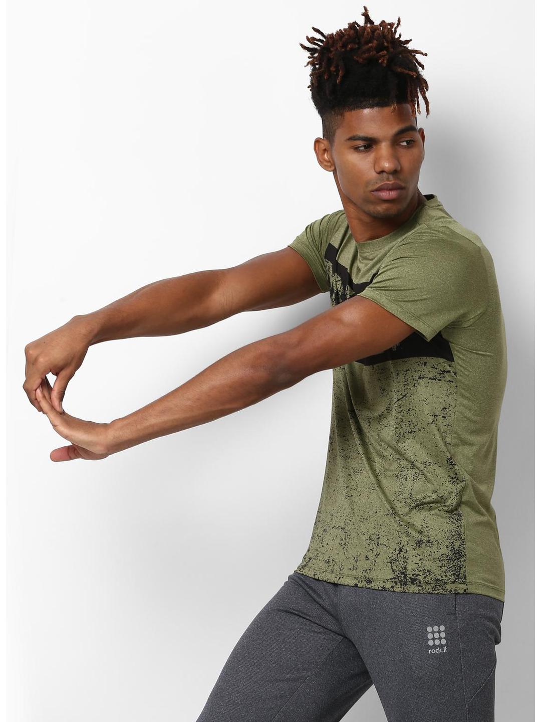 - Men Olive Green Round Neck Smart Fit T-Shirt