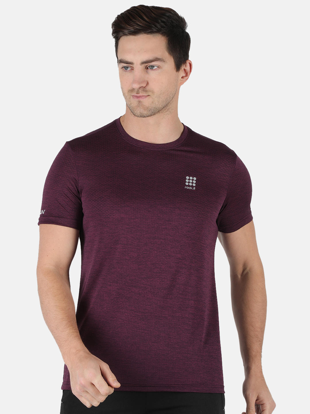 - Men Purple Round Neck Regular Fit Half Sleeve T-shirt