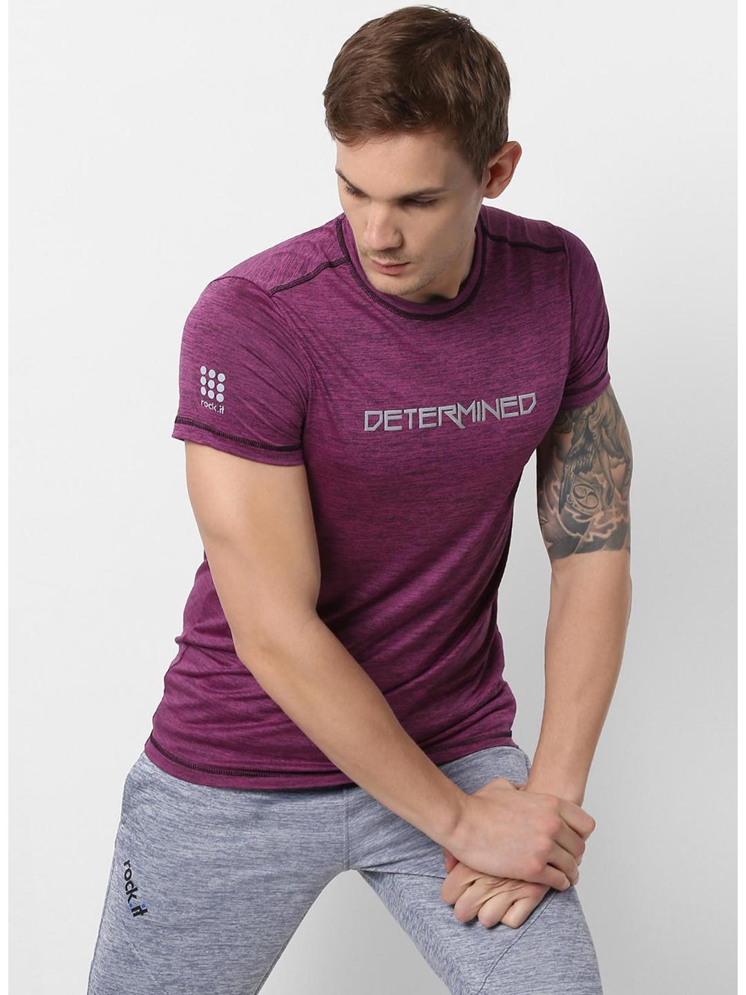 - Men Purple Round Neck Slim T-Shirt