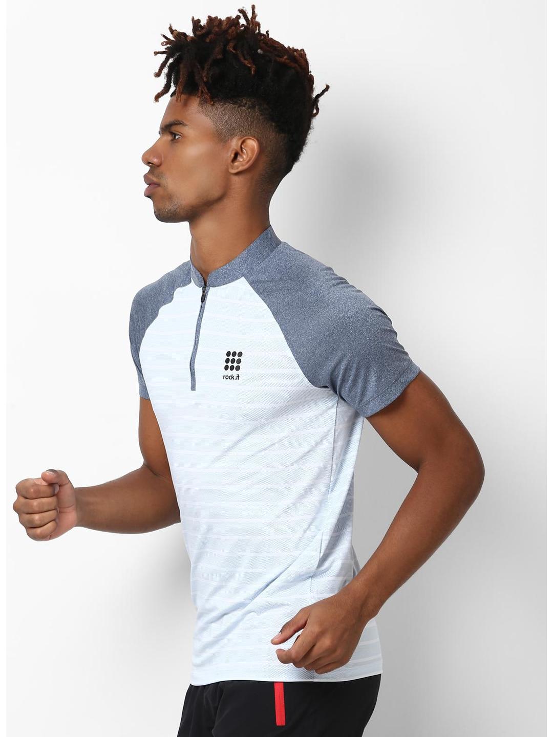 - Men Sky Blue Collar Smart Fit T-Shirt