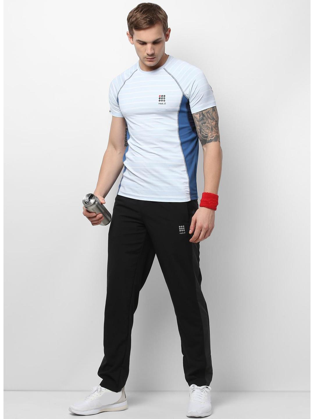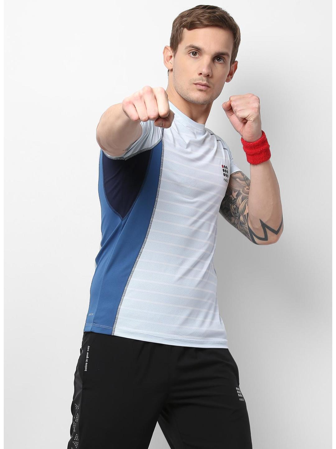 Men Sky Blue Round Neck Slim T-Shirt