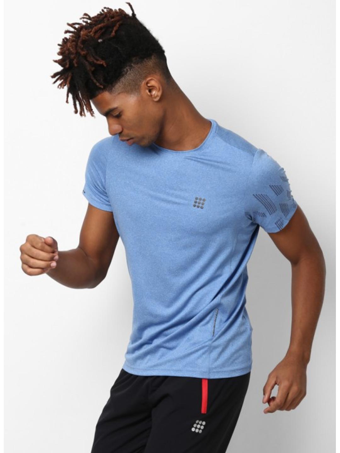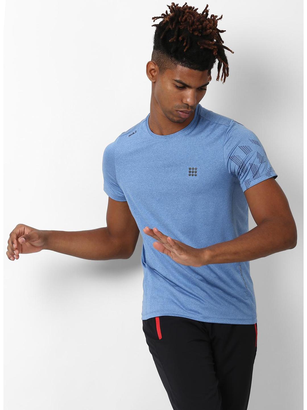 Men Sky Blue Round Neck Smart Fit T-Shirt