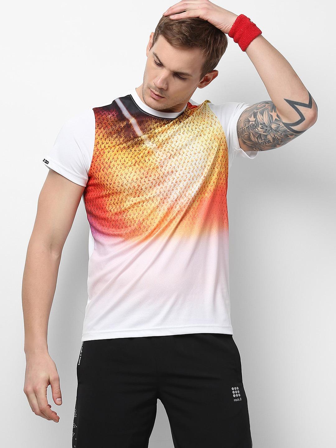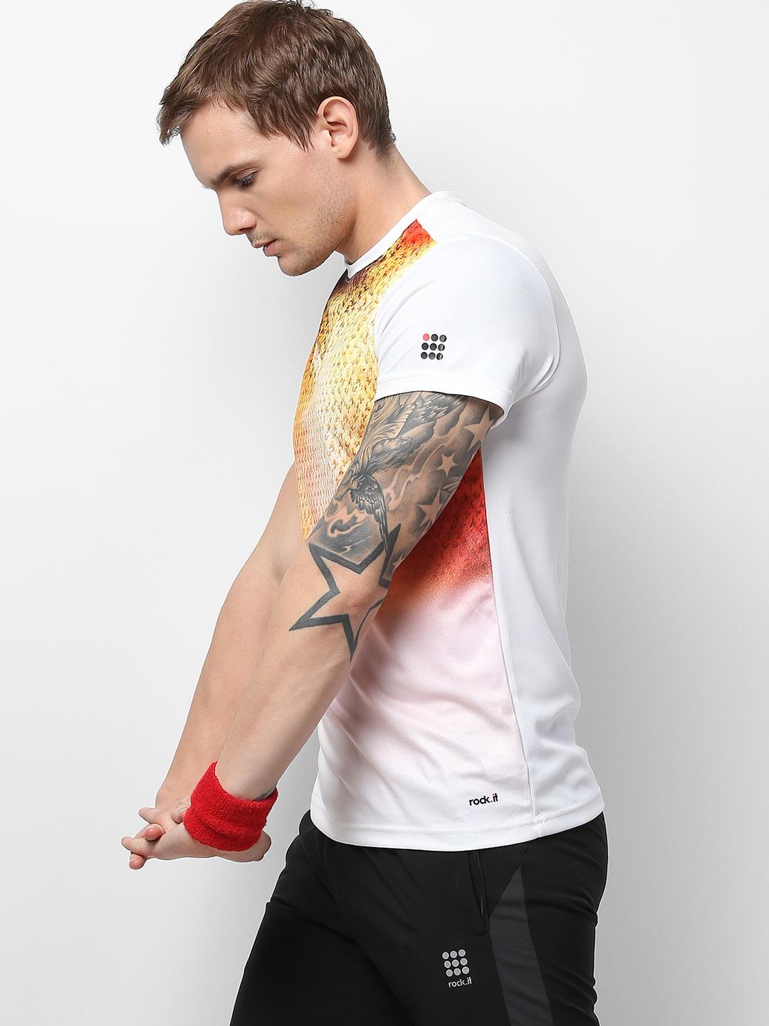 - Men White Orange Round Neck Smart Fit T-Shirt
