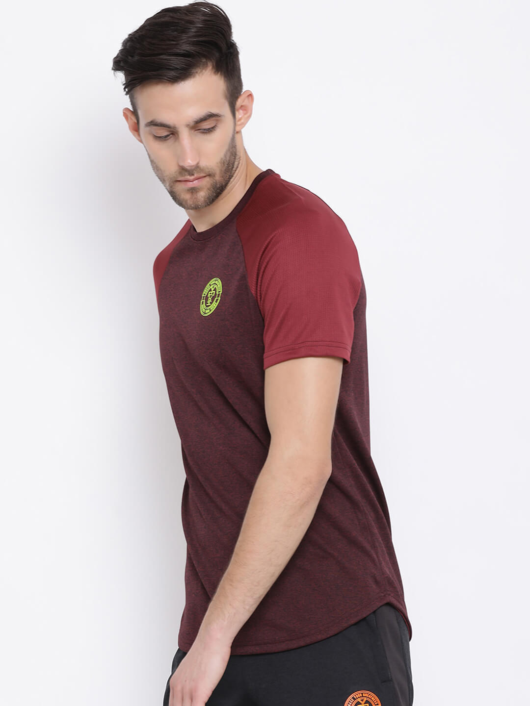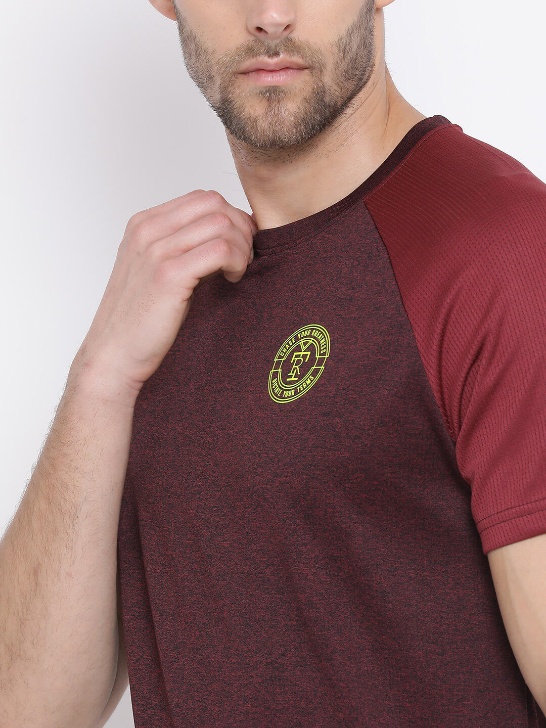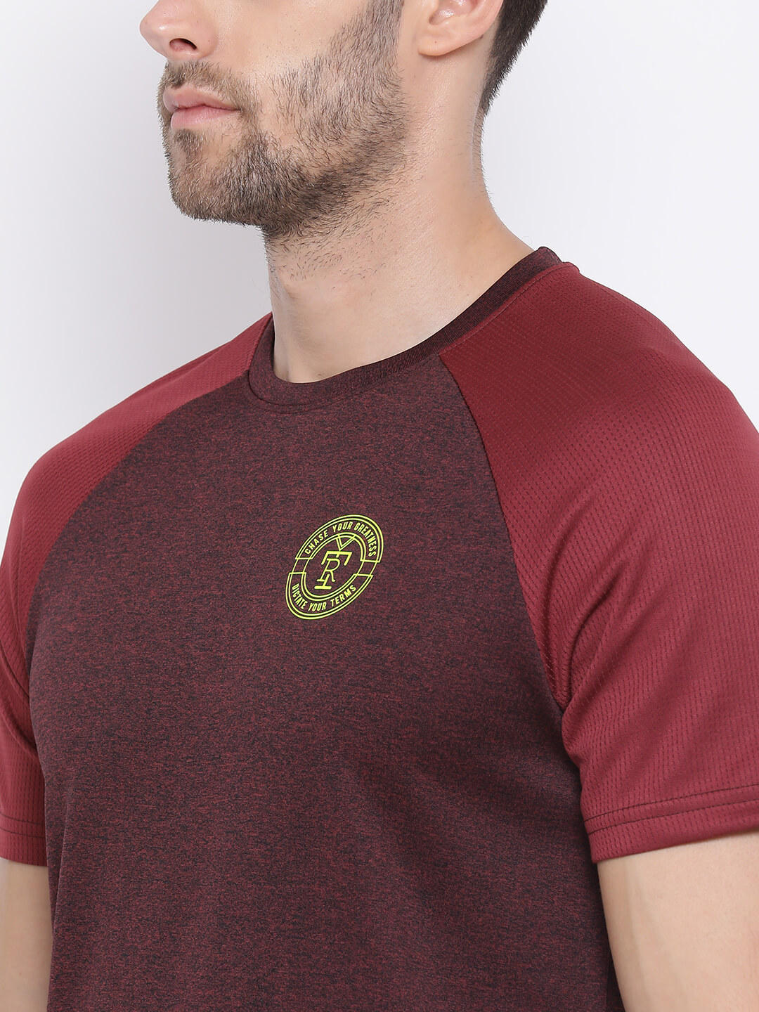 - Men Wine Round Neck Regular Fit T-Shirt