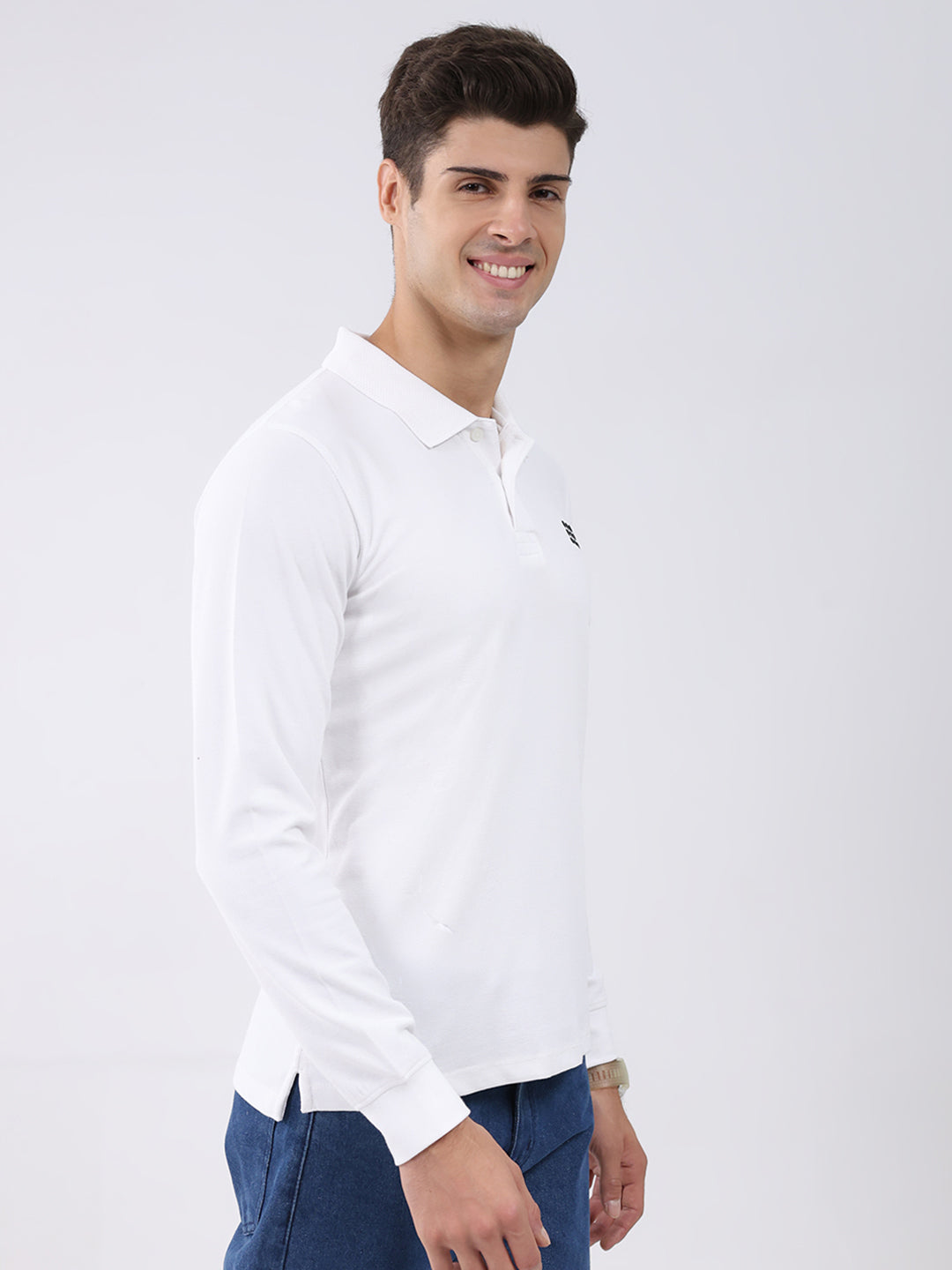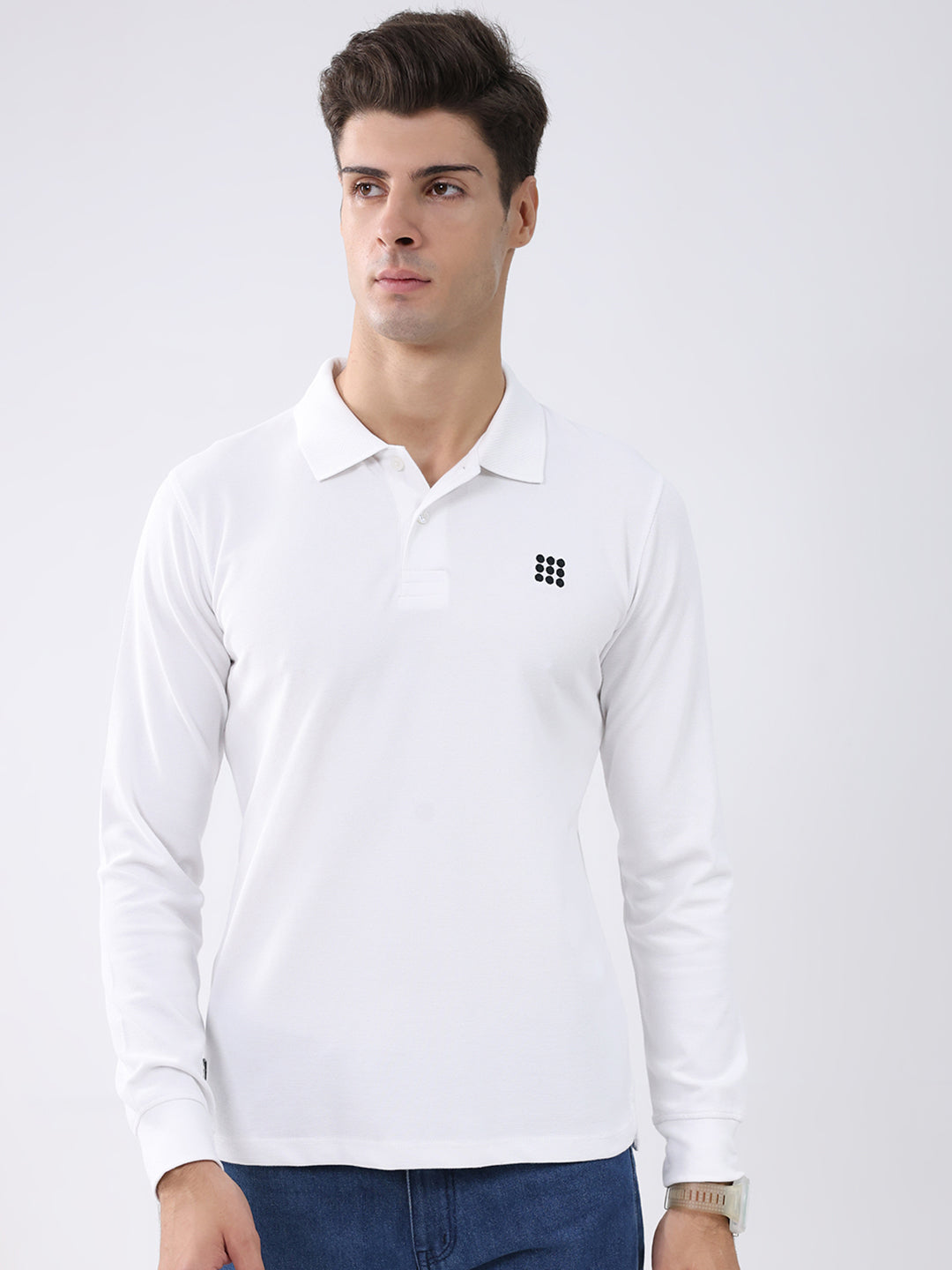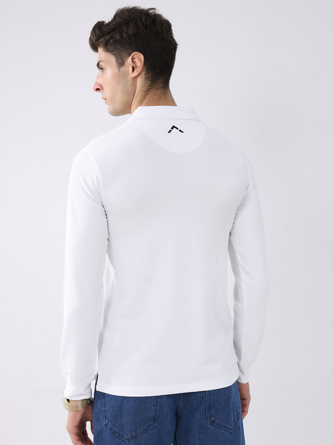 - Men White Solid Collar Full Sleeve Winter T-Shirt