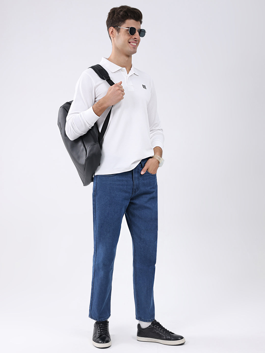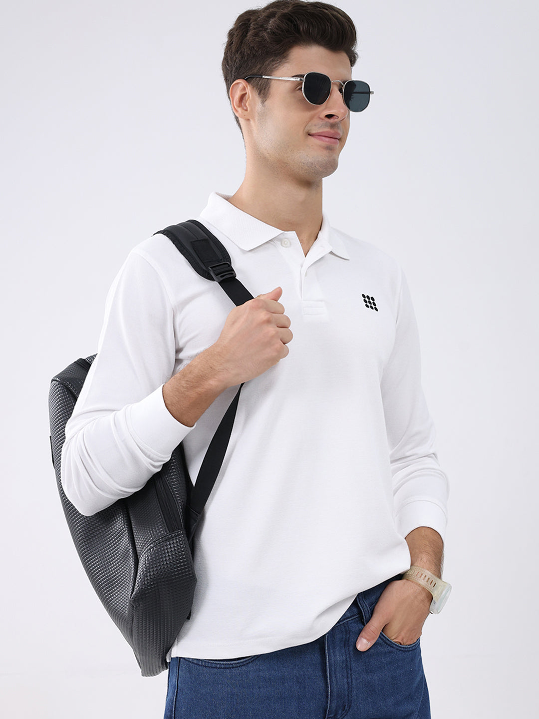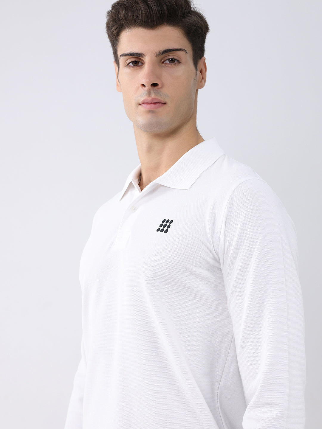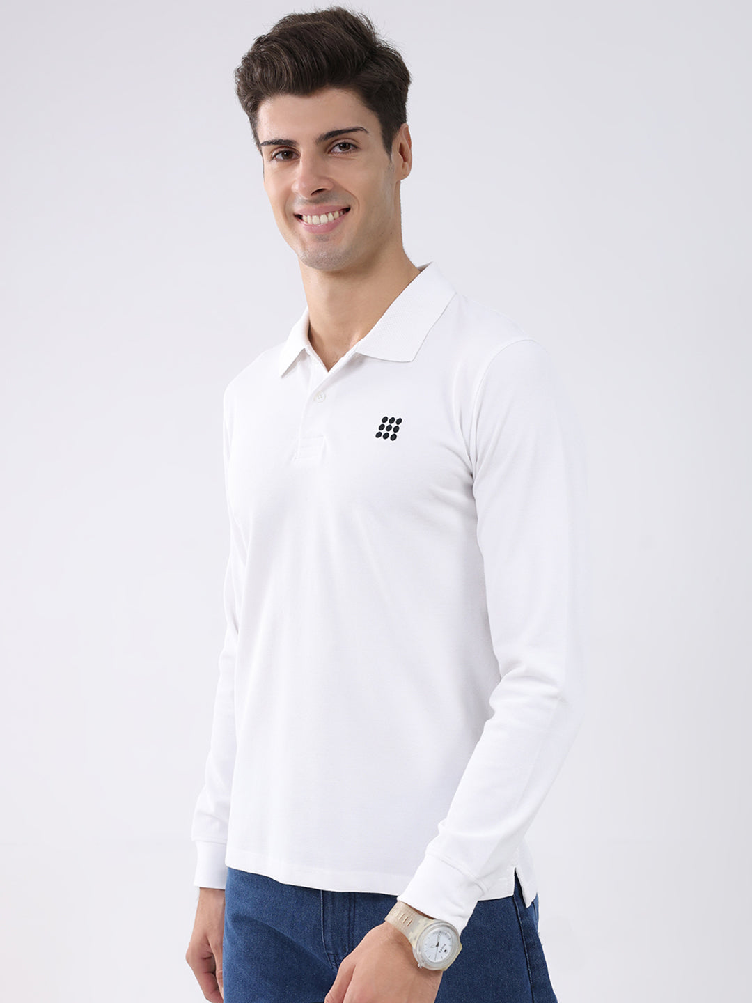 - Men White Solid Collar Full Sleeve Winter T-Shirt