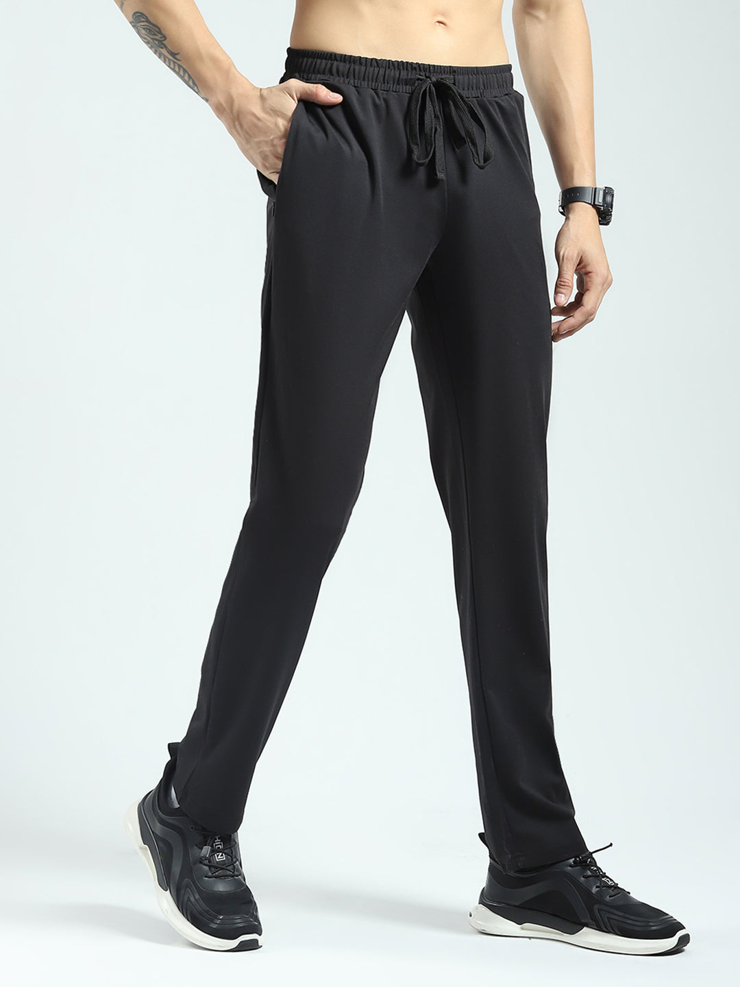 Men Black Solid Regular Fit Lower