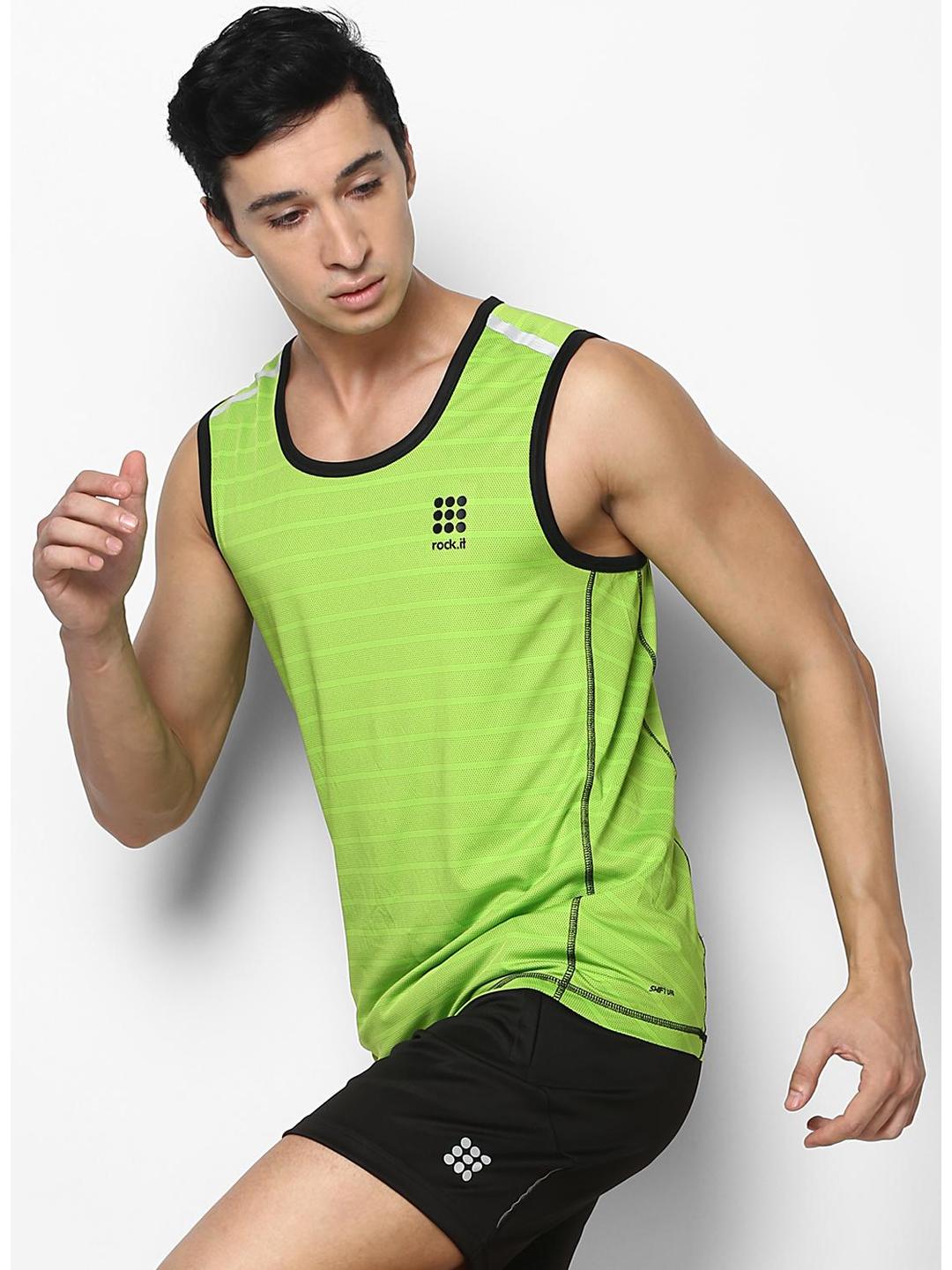 - Men Florescent Green Round Neck Smart Fit Sandow