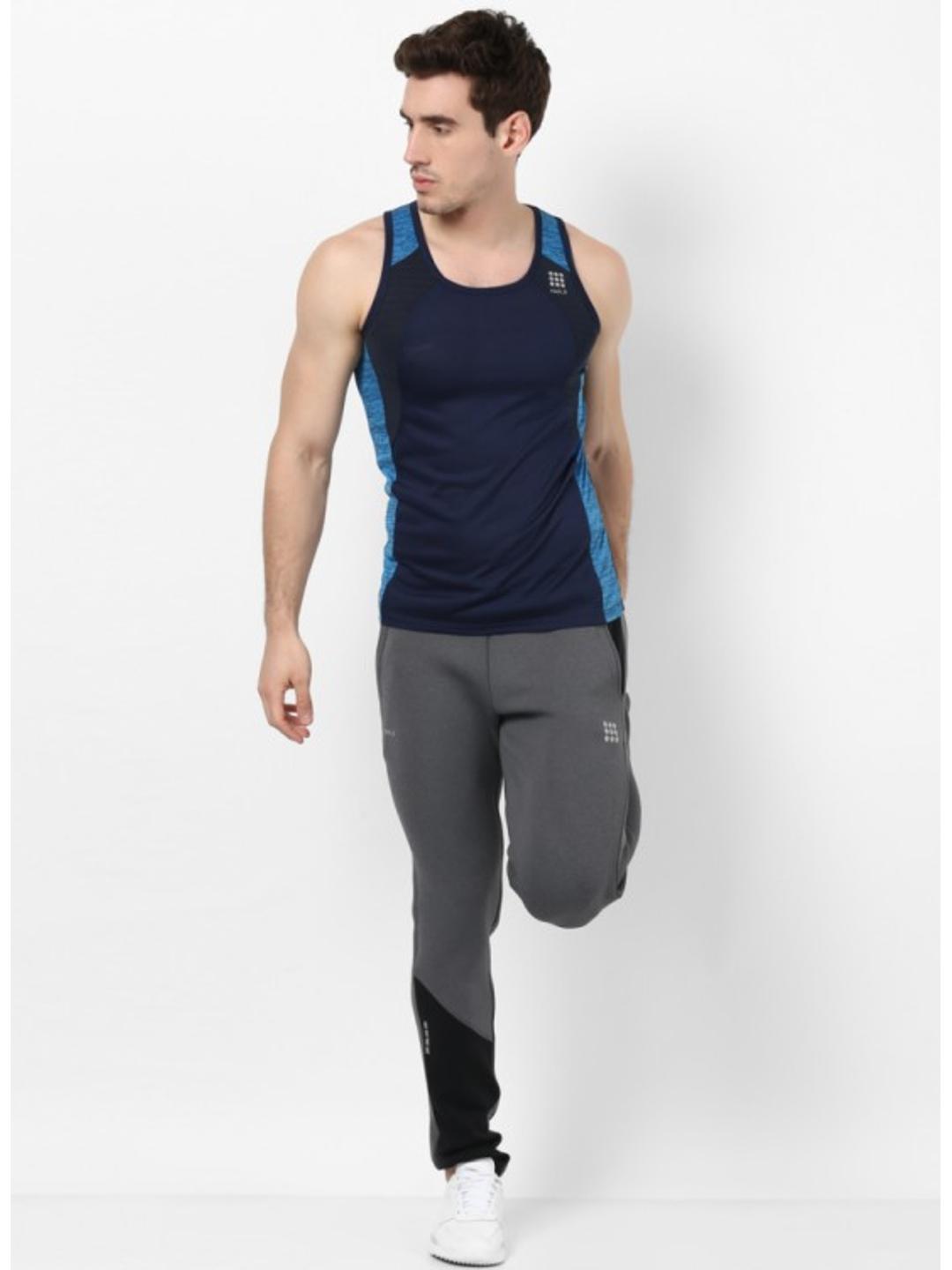 - Men Navy Blue Round Neck Smart Fit Sandow