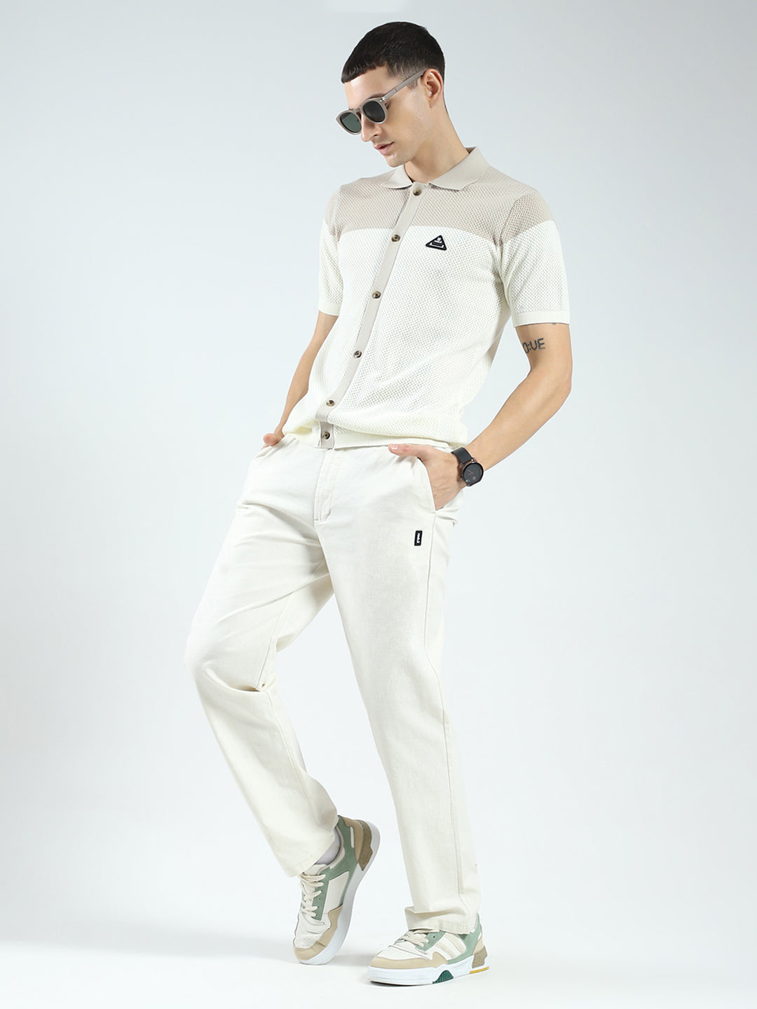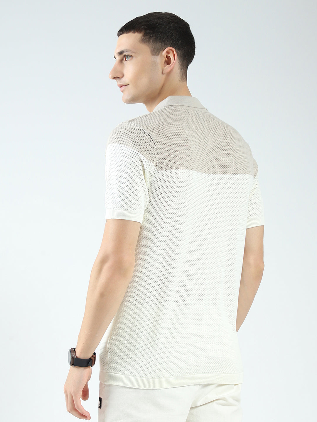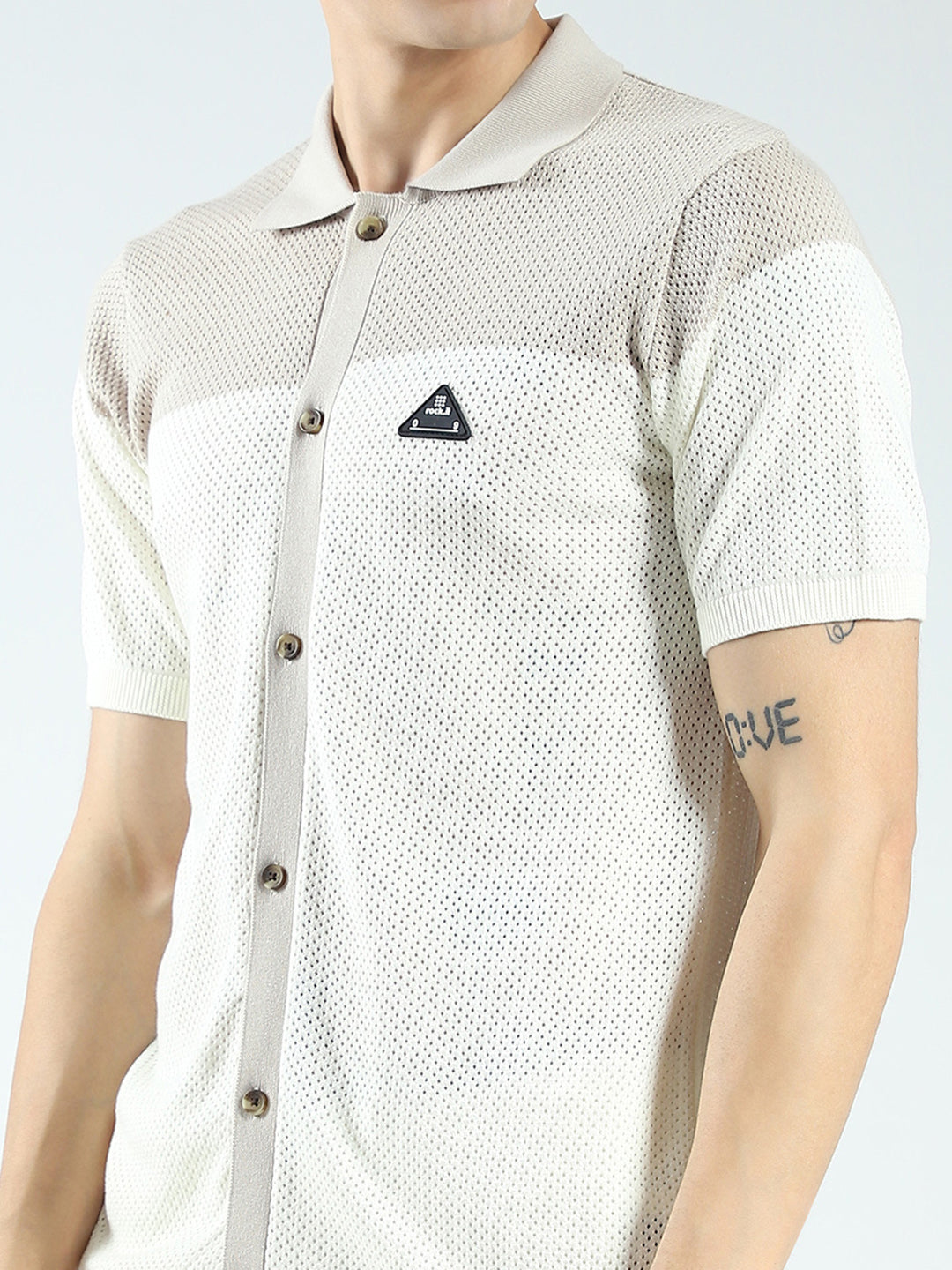- Men Beige Self Design Collar Half Sleeve Shirt