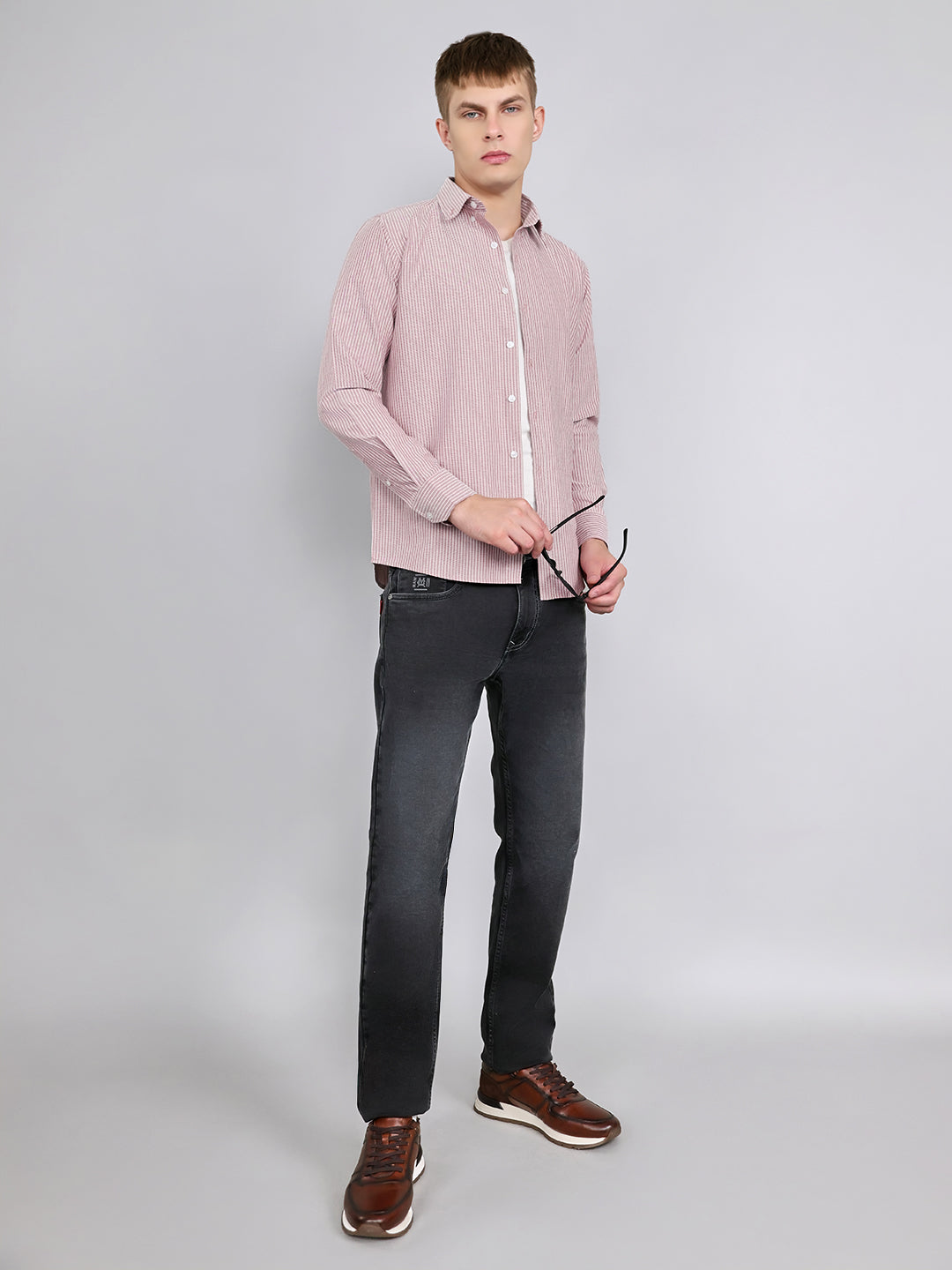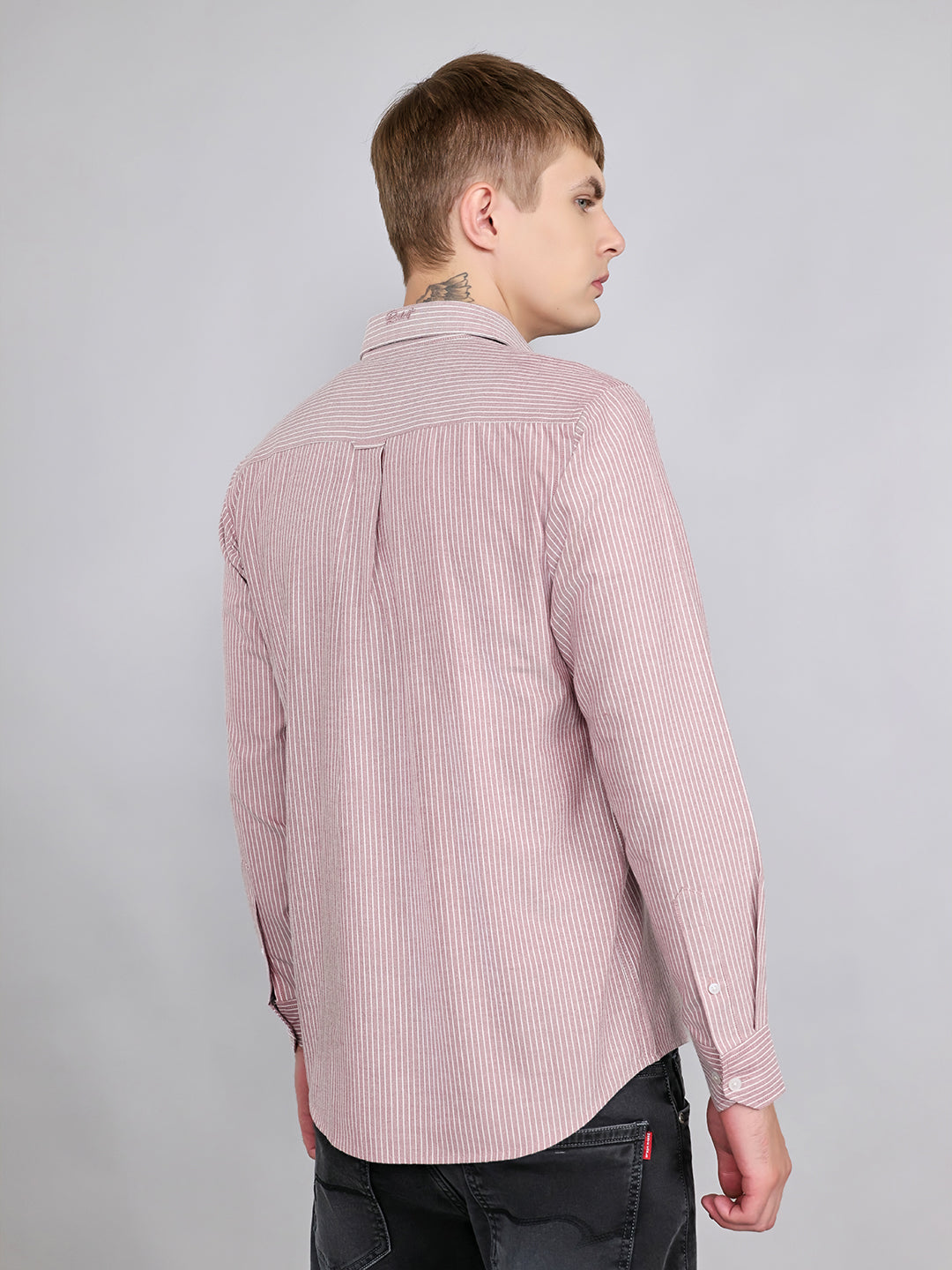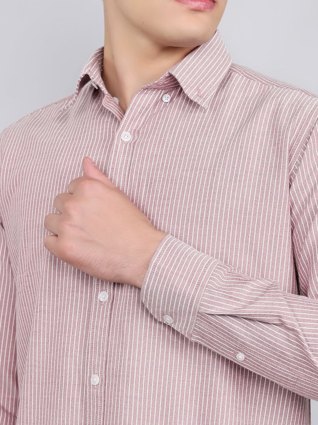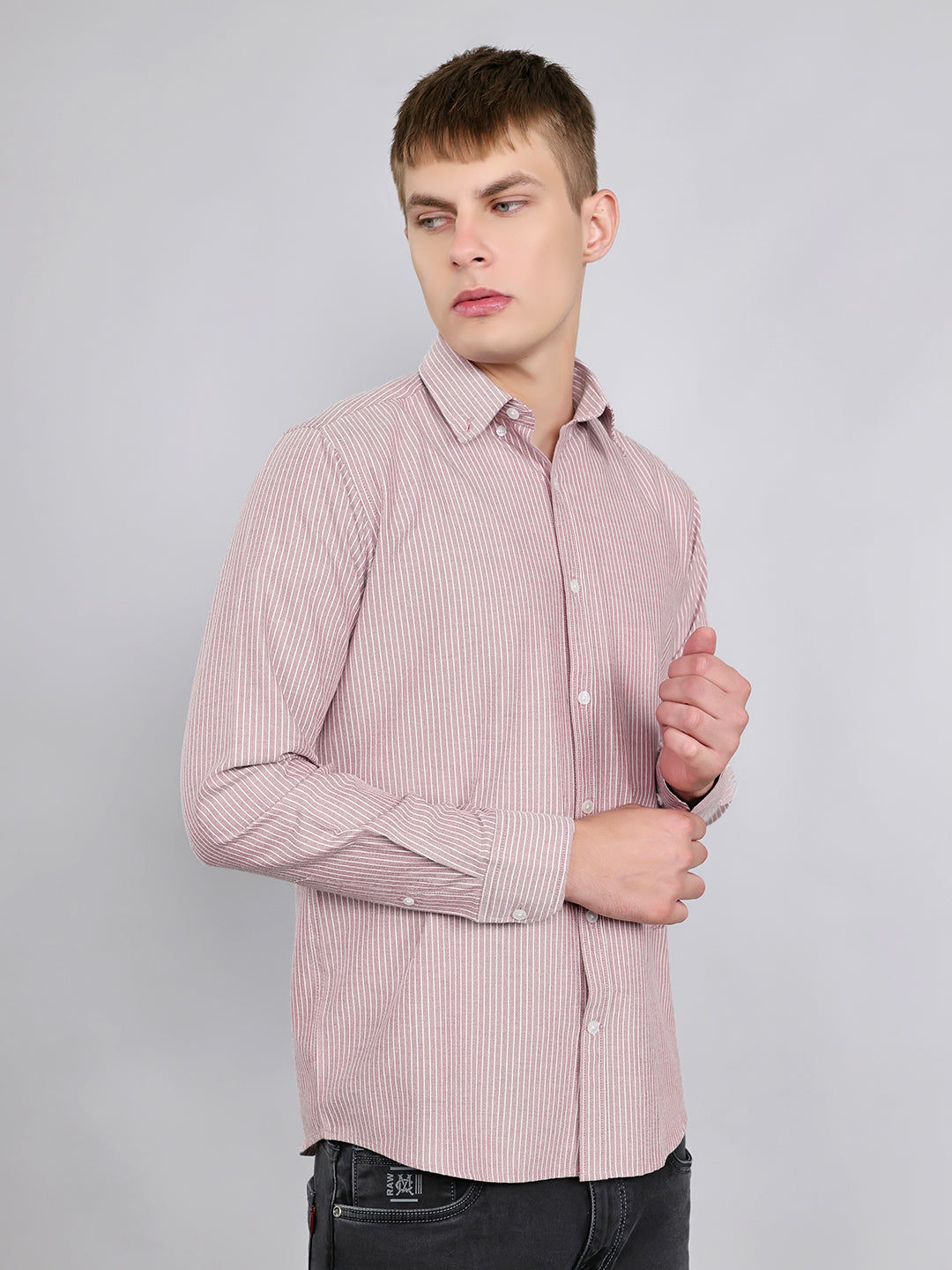 - Men Mauve Stripe Collar Full Sleeve Shirt