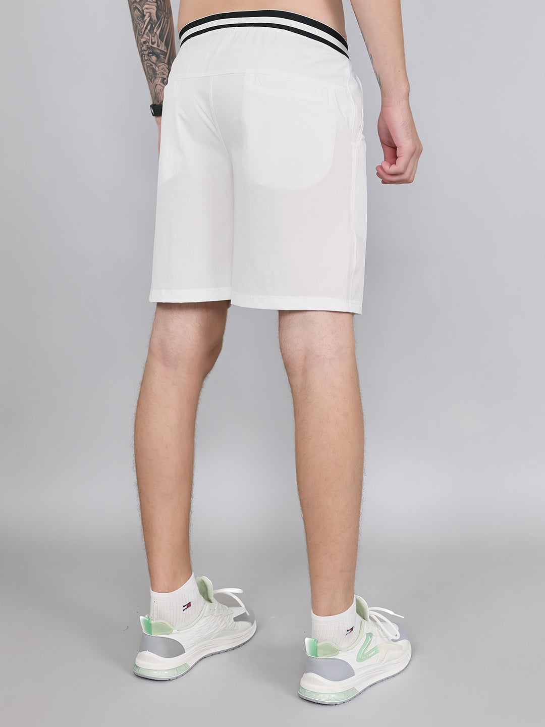 - Men Off White Solid Regular Fit Shorts