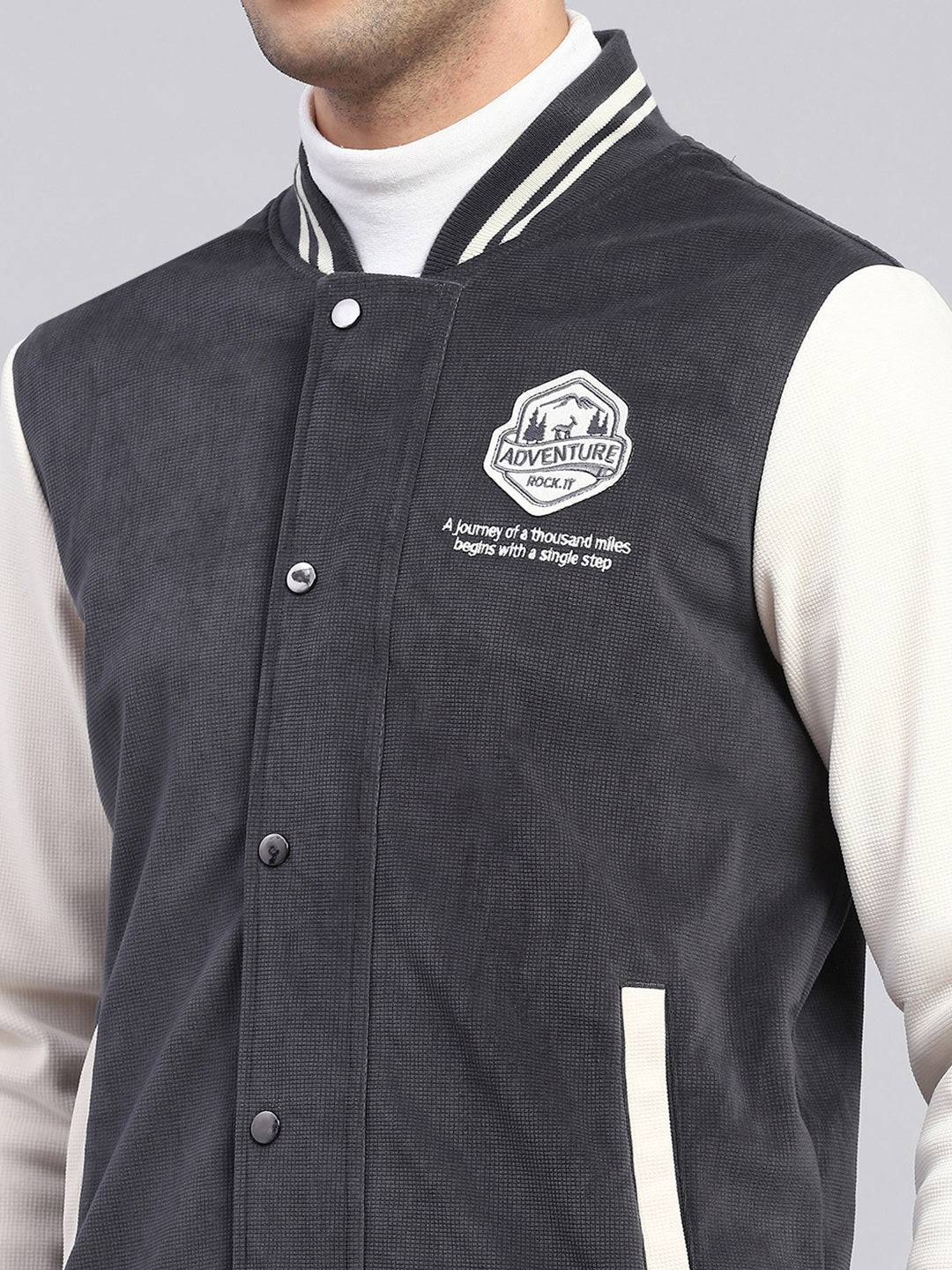 - Men Charcoal Self Design Band Collar Full Sleeve Sweatshirt