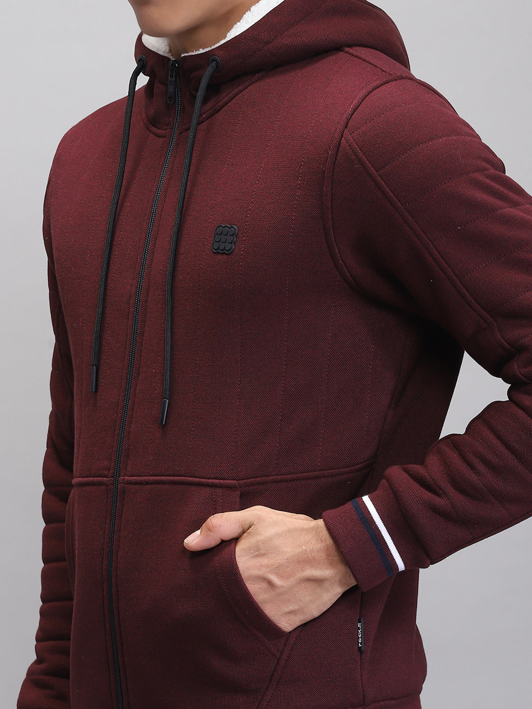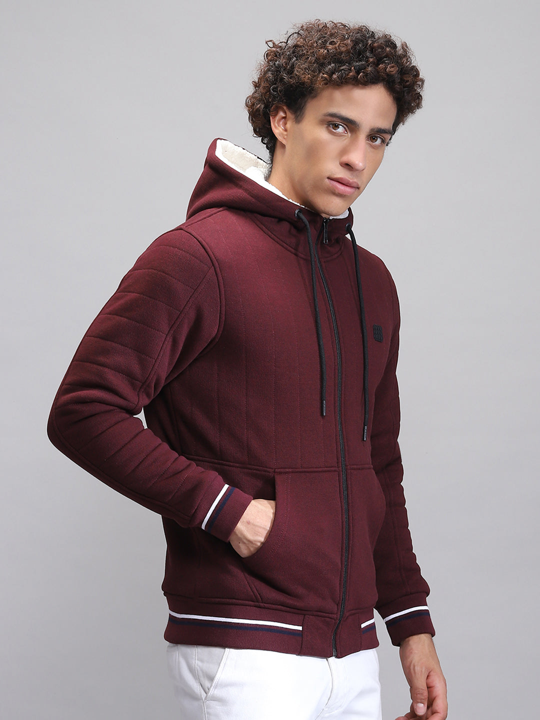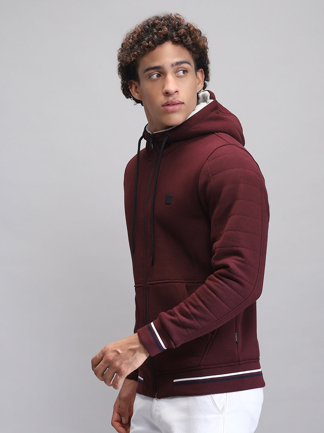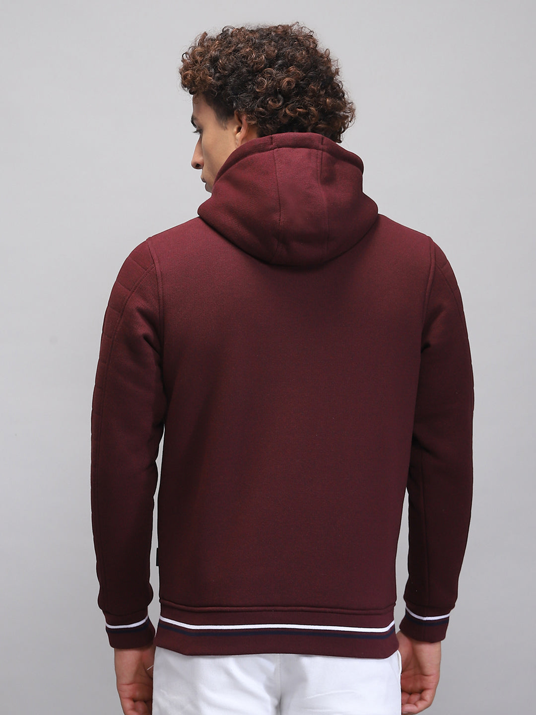 - Men Maroon Solid Hooded Full Sleeve Sweatshirt