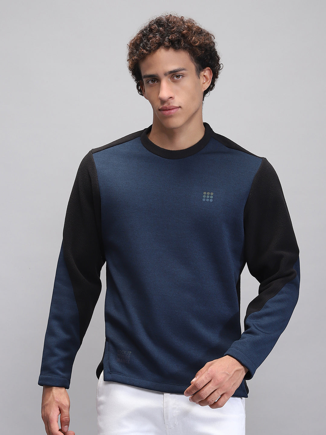 - Men Teal Blue Solid Round Neck Full Sleeve Sweatshirt