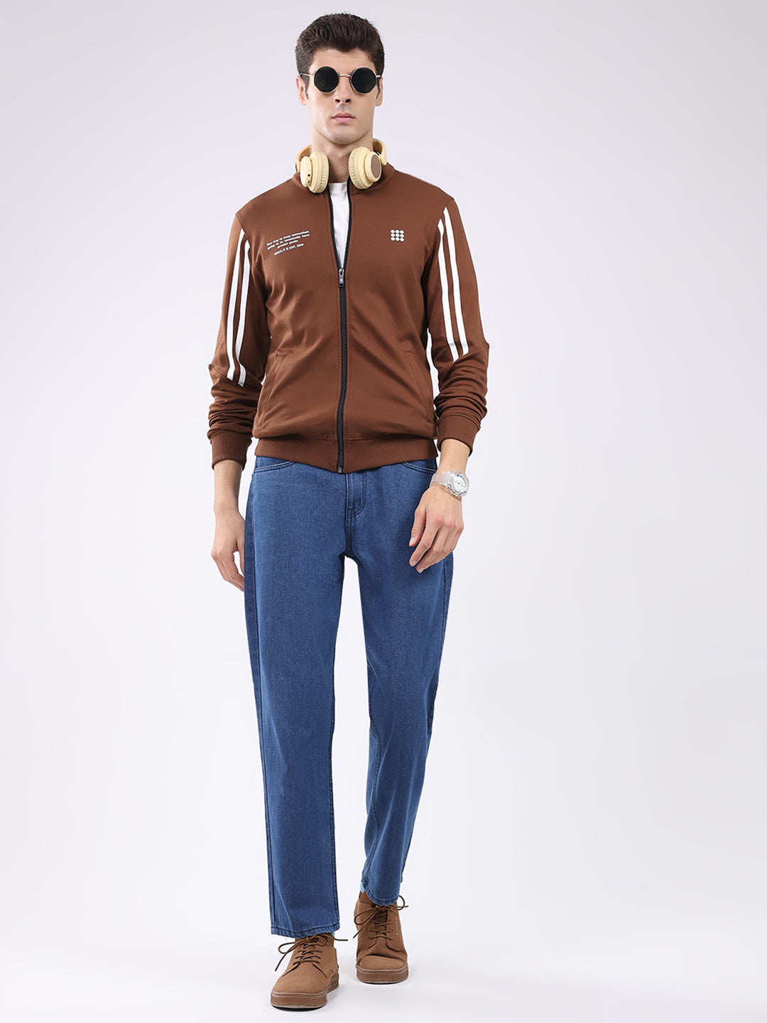 - Men Brown Printed Mock Neck Full Sleeve Sweatshirt