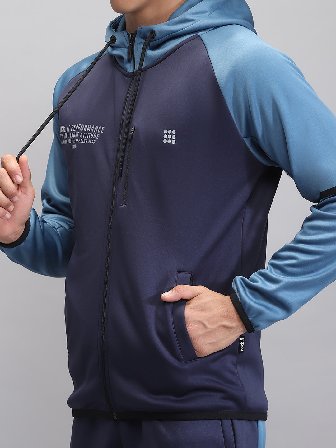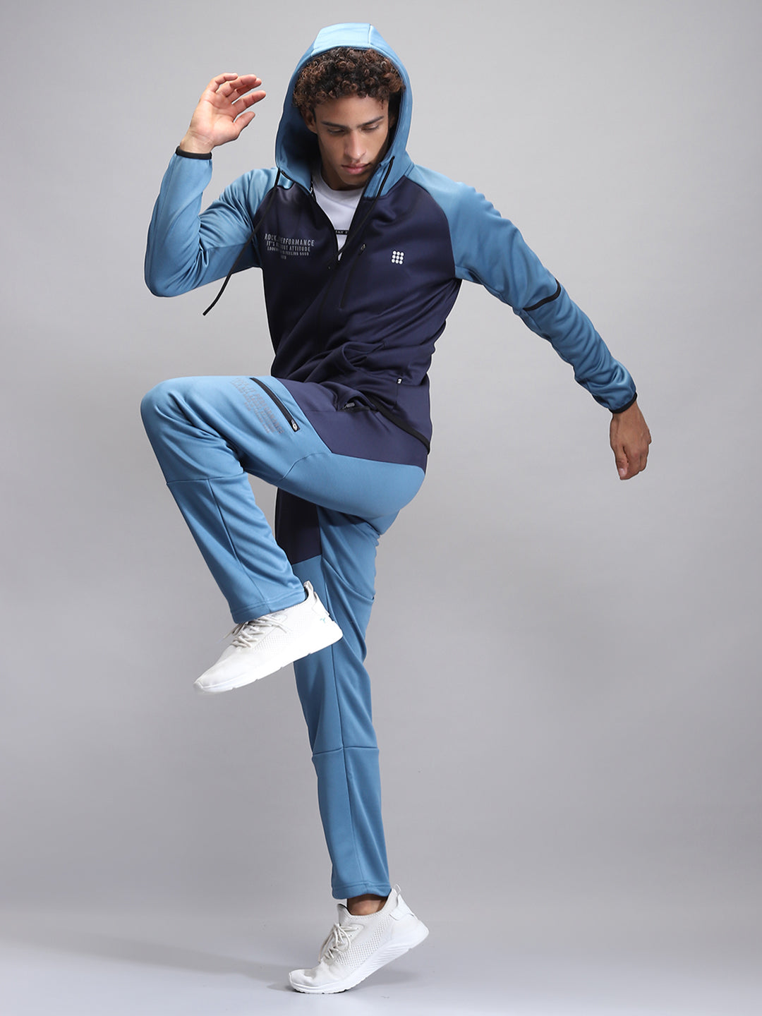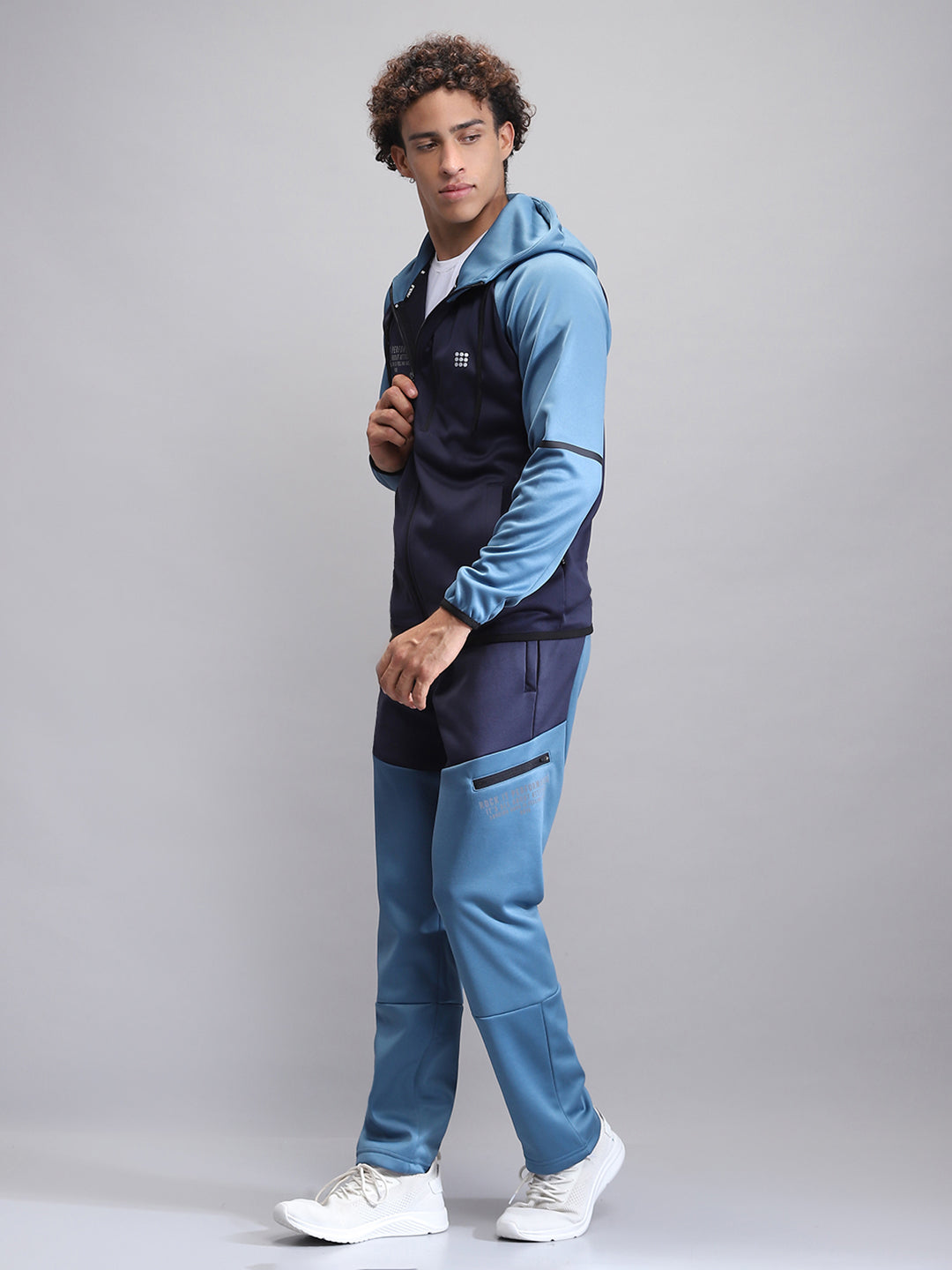 - Men Navy Blue Printed Hooded Full Sleeve Winter Tracksuit