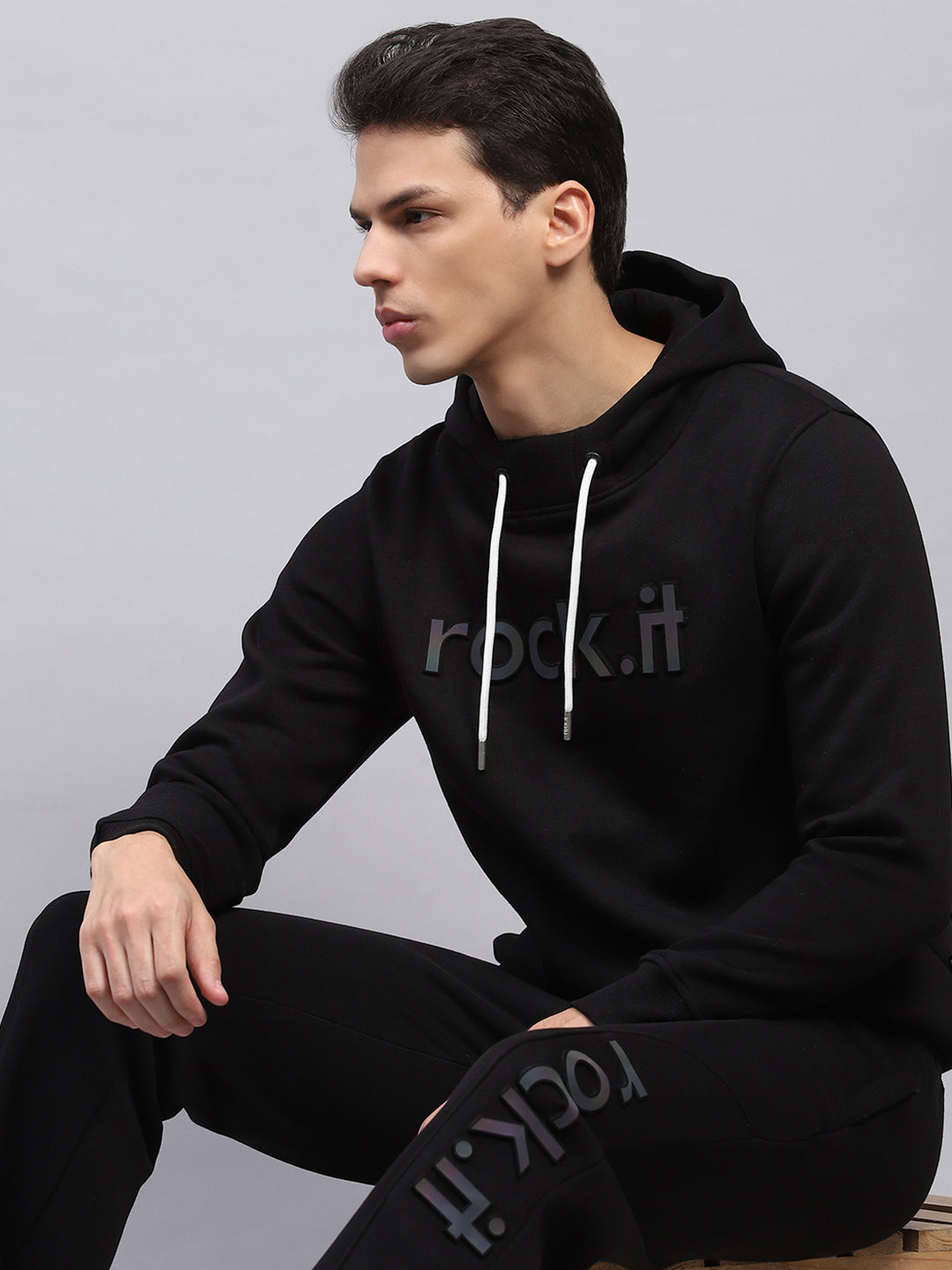 - Men Black Printed Hooded Full Sleeve Winter Tracksuit