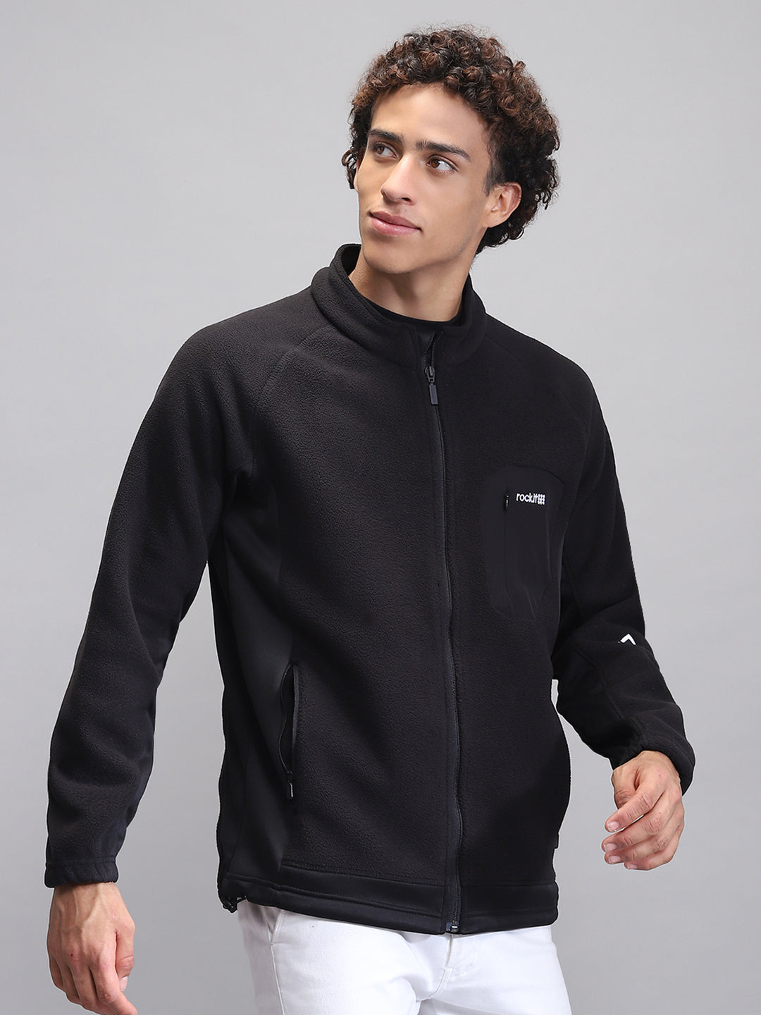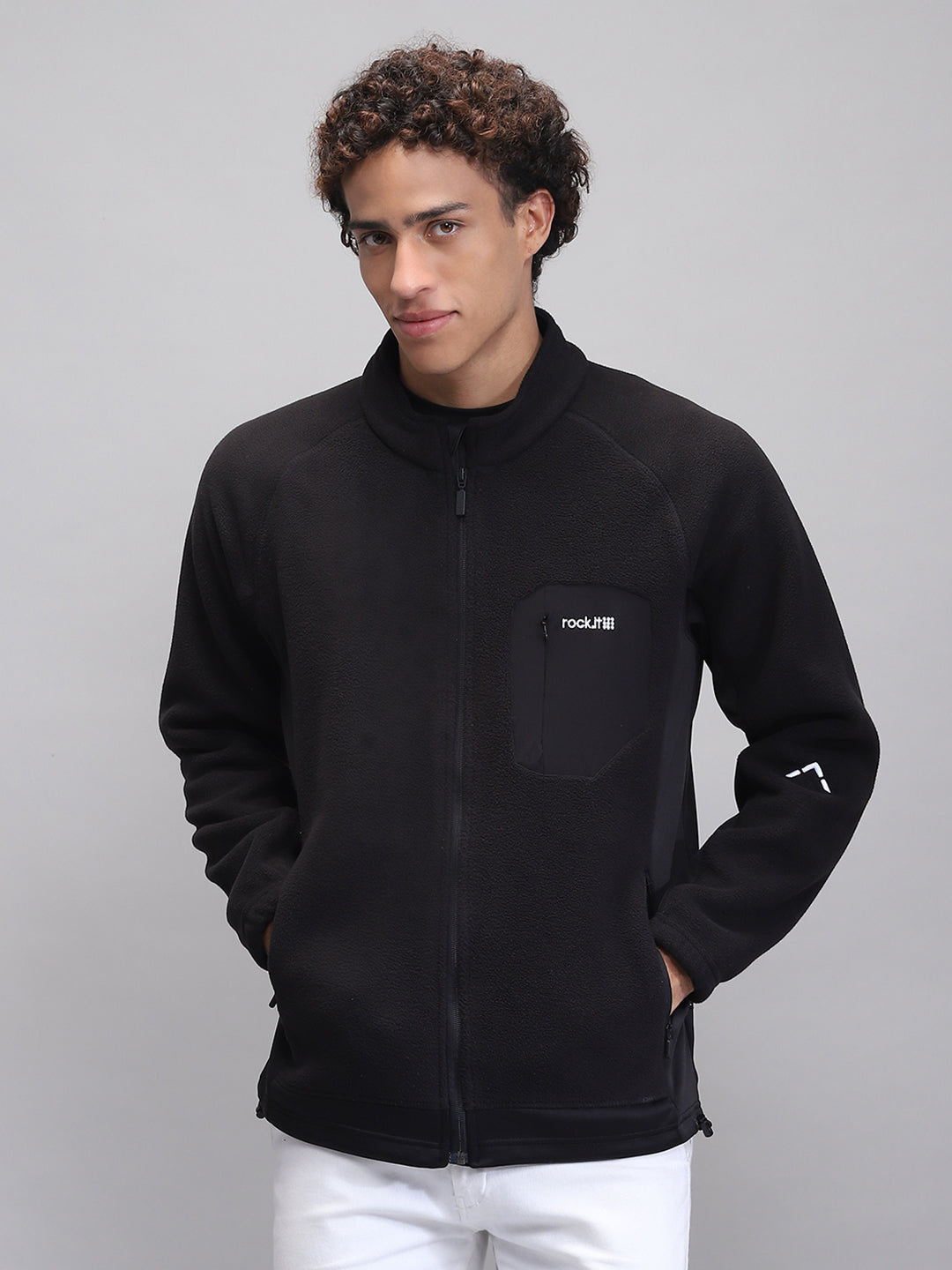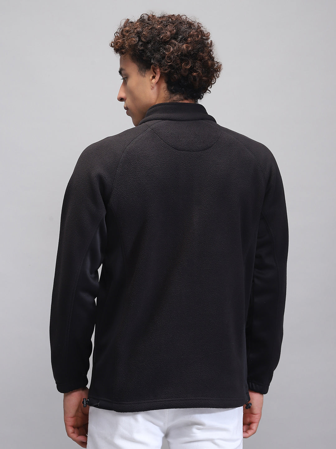 - Men Black Solid Mock Neck Full Sleeve Sweatshirt