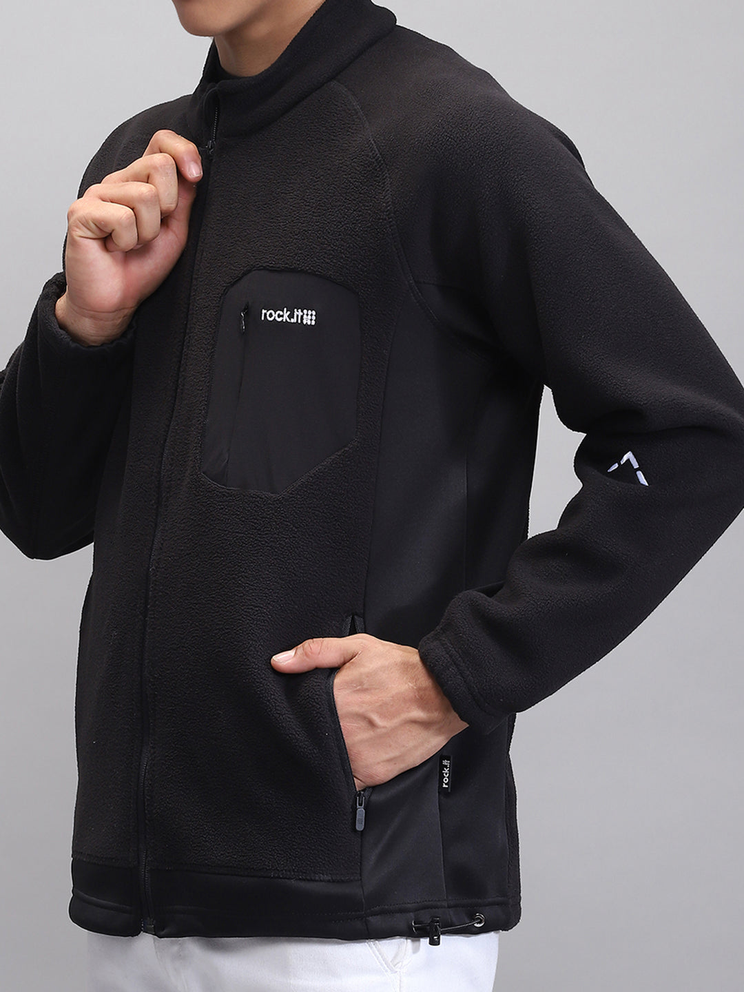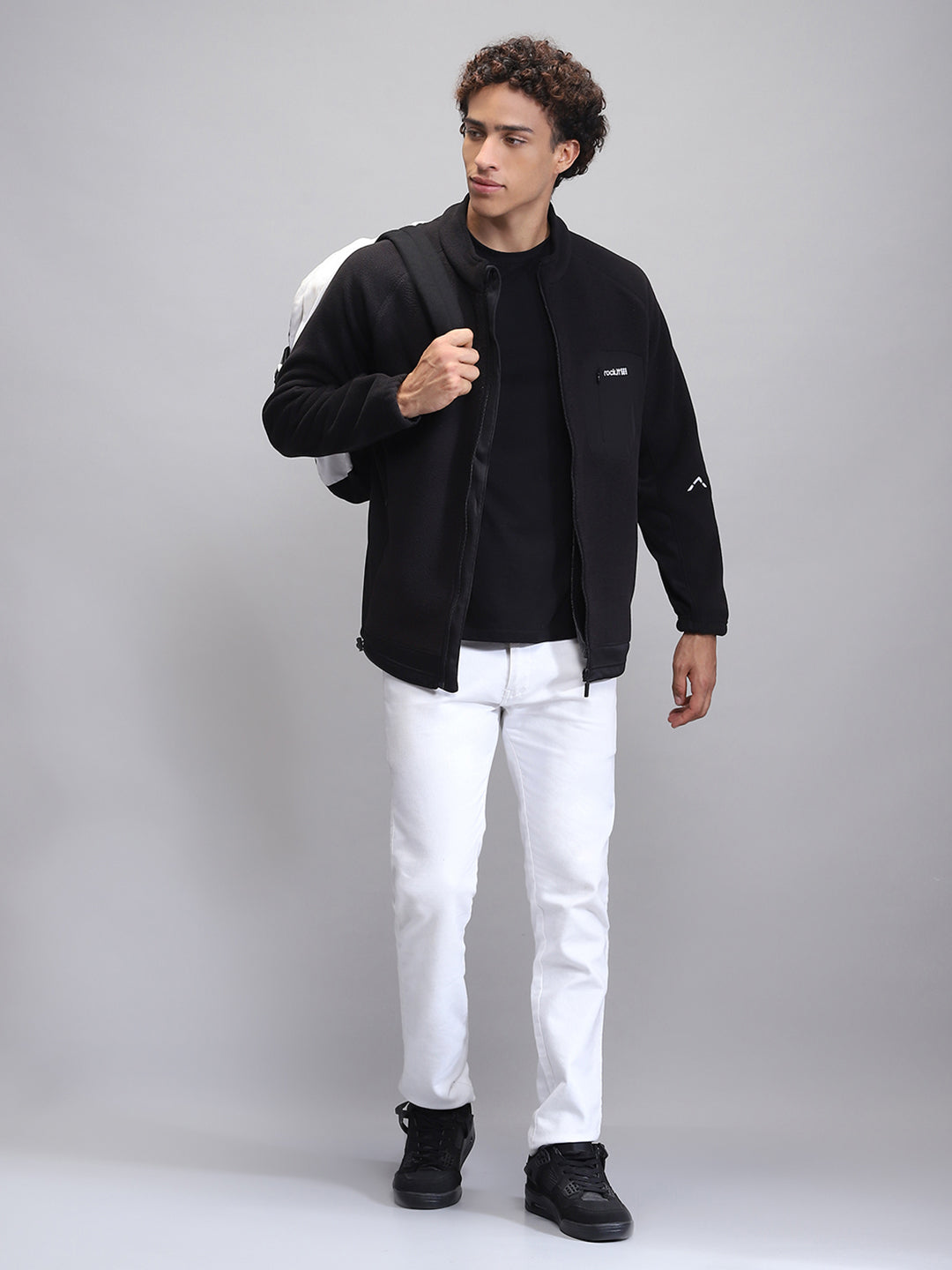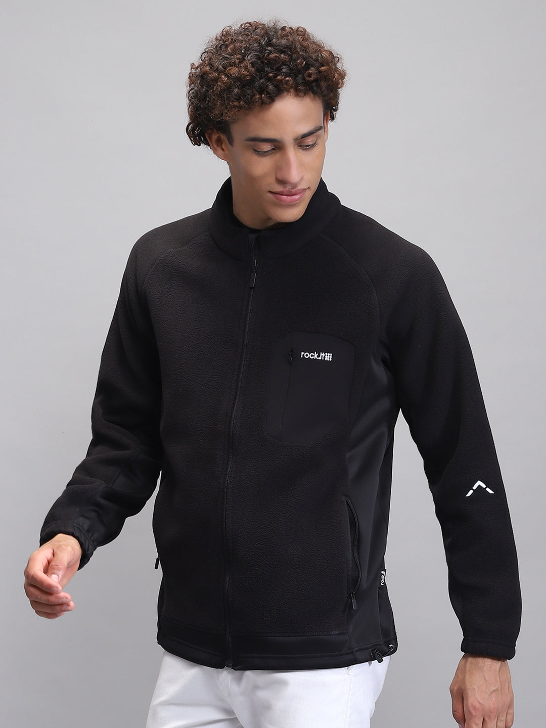 - Men Black Solid Mock Neck Full Sleeve Sweatshirt