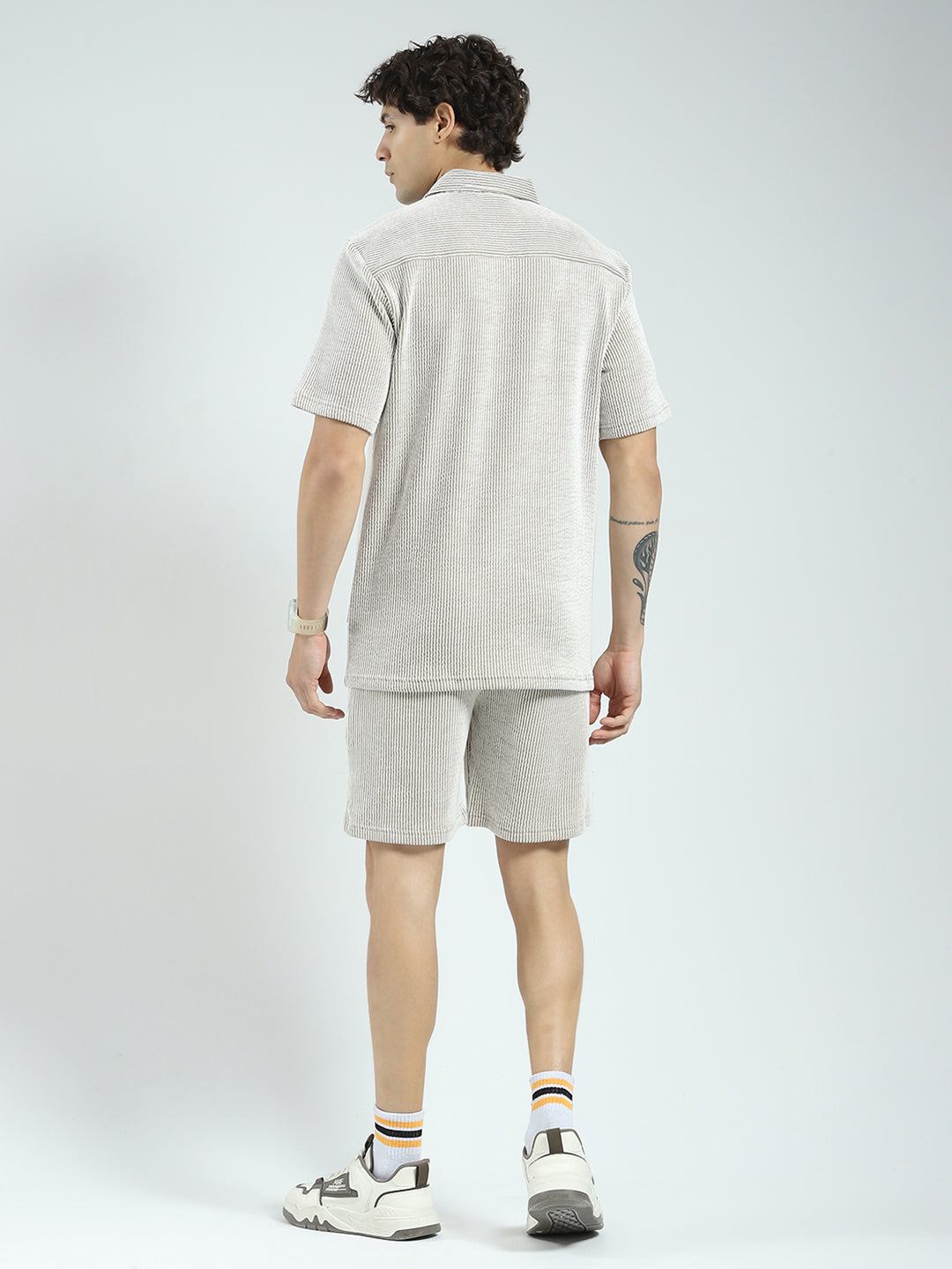 - Men Brown Stripe Collar Half Sleeve Cords Set