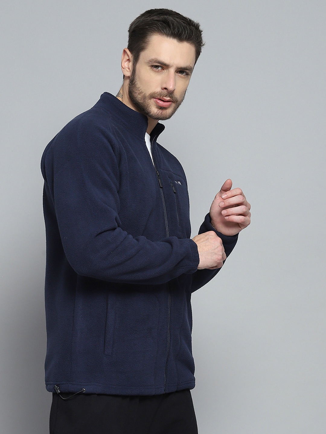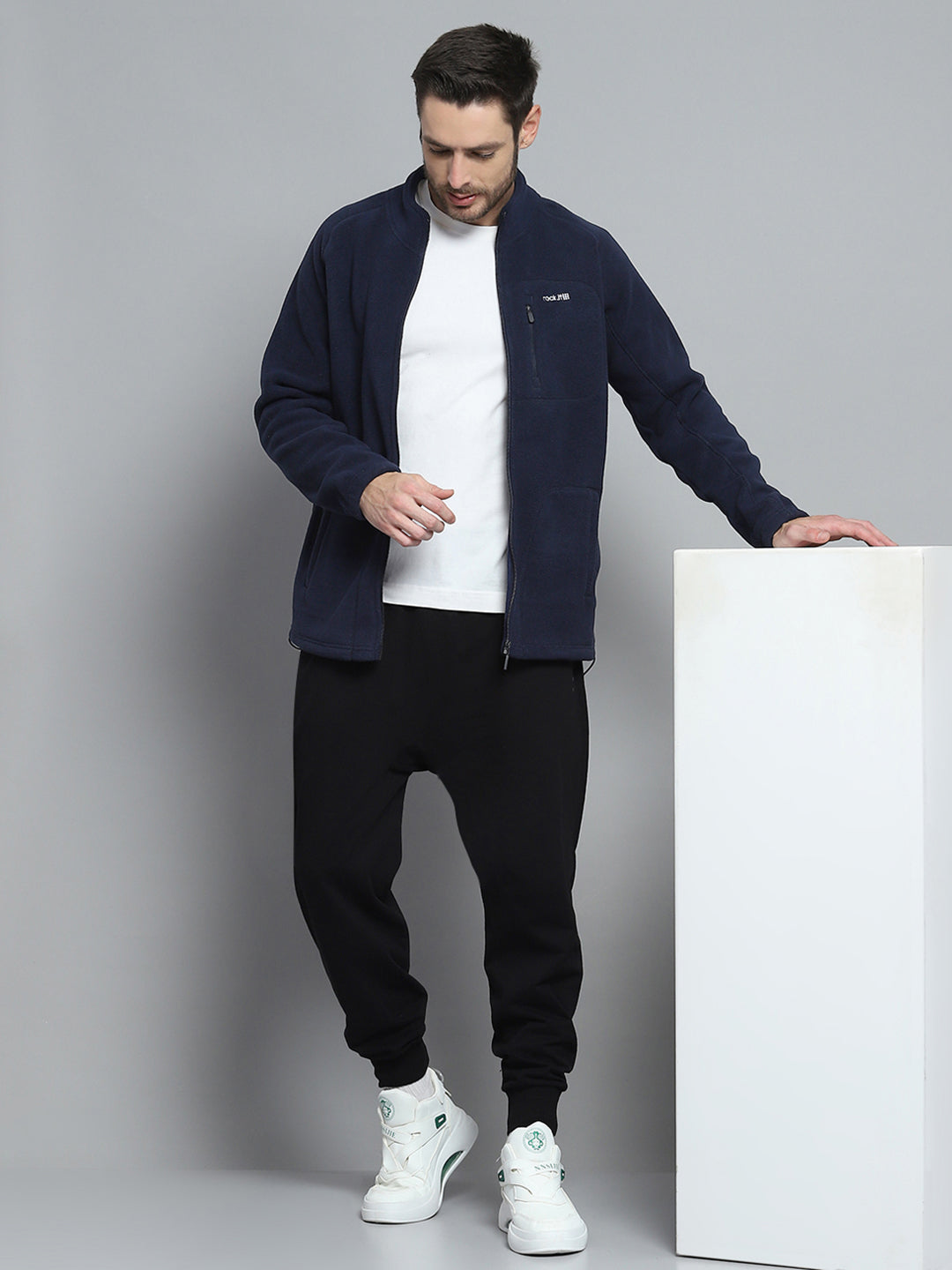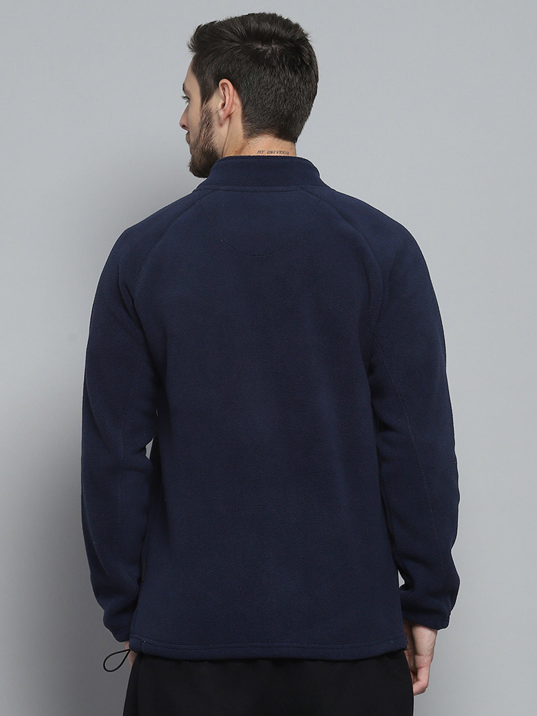 - Men Navy Blue Solid Mock Neck Full Sleeve Sweatshirt