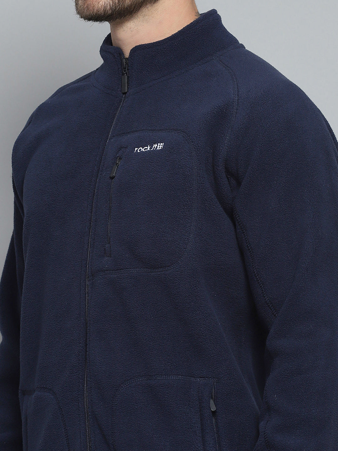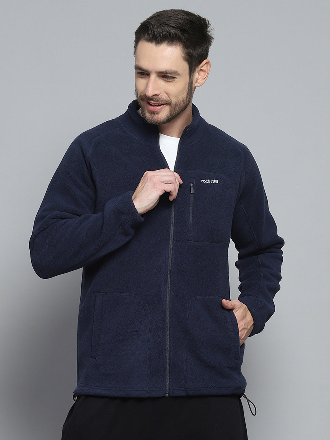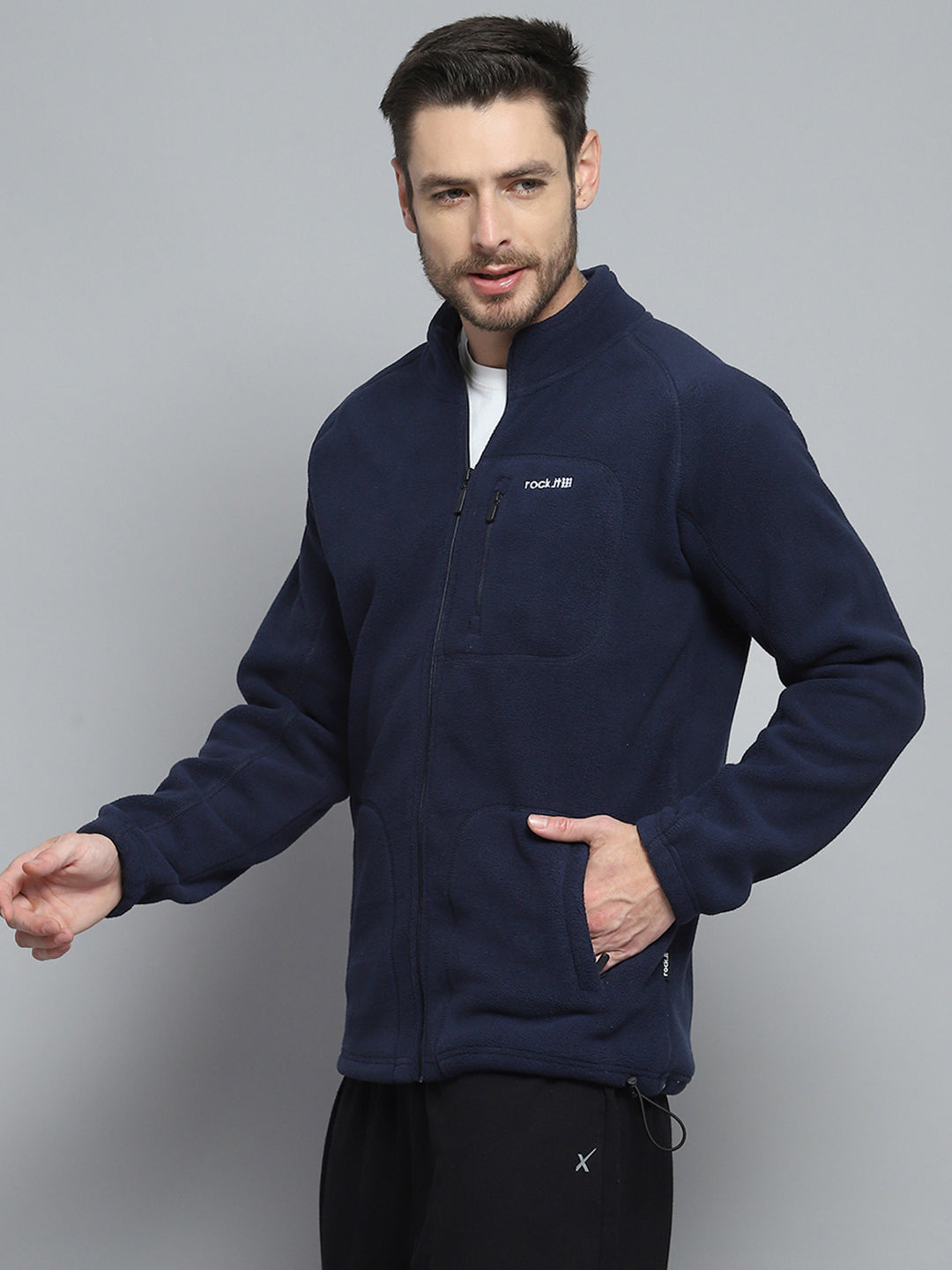 - Men Navy Blue Solid Mock Neck Full Sleeve Sweatshirt