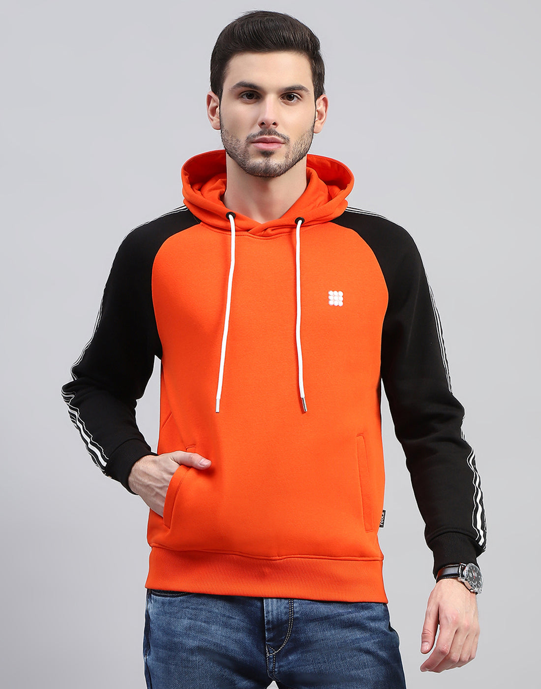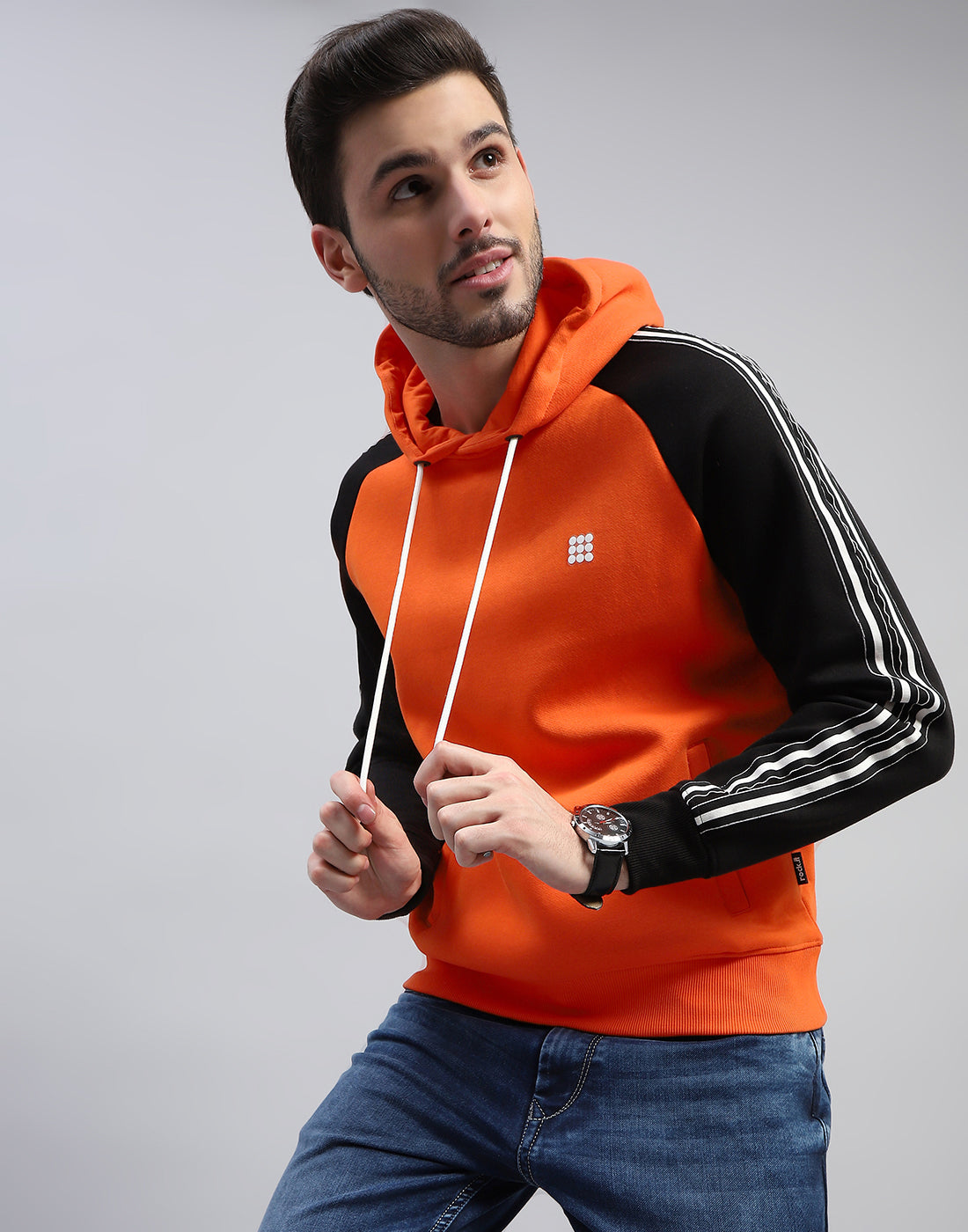- Men Orange Solid Hooded Full Sleeve Sweatshirt