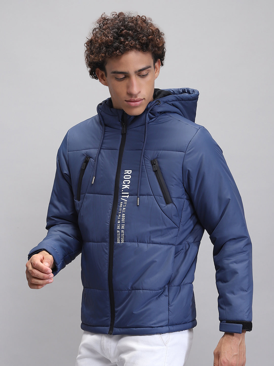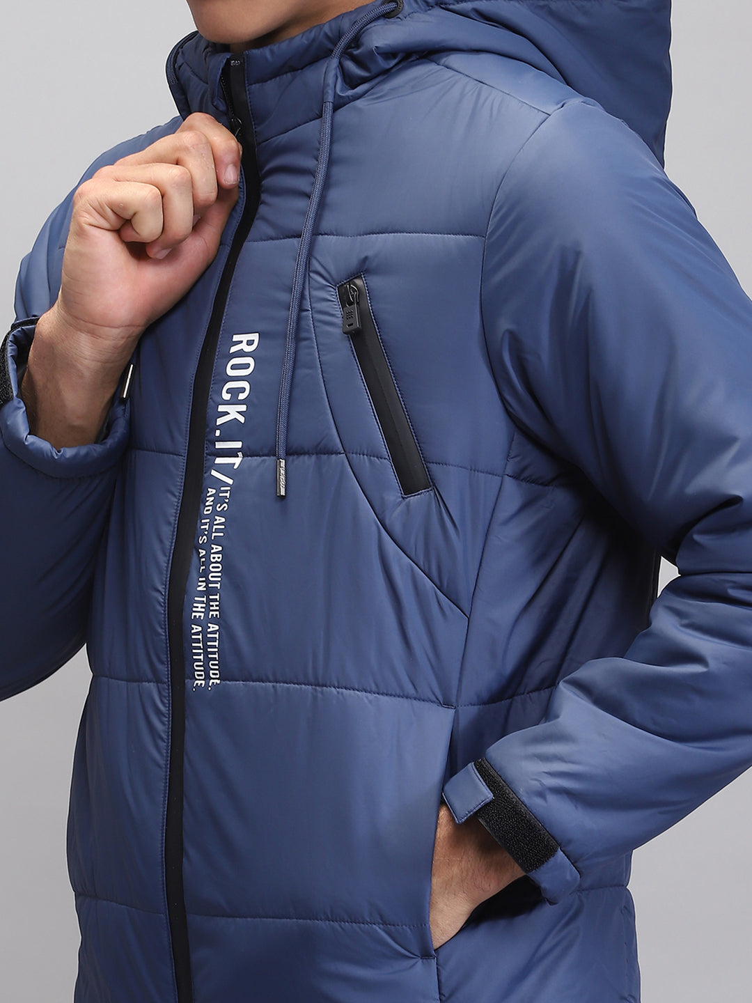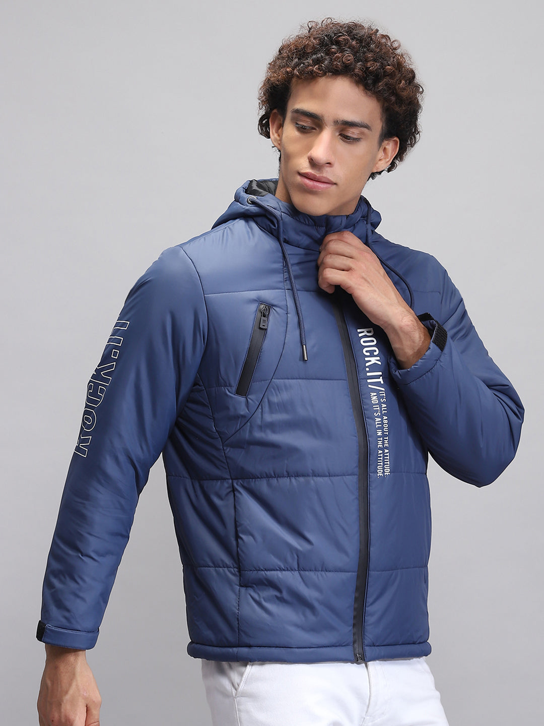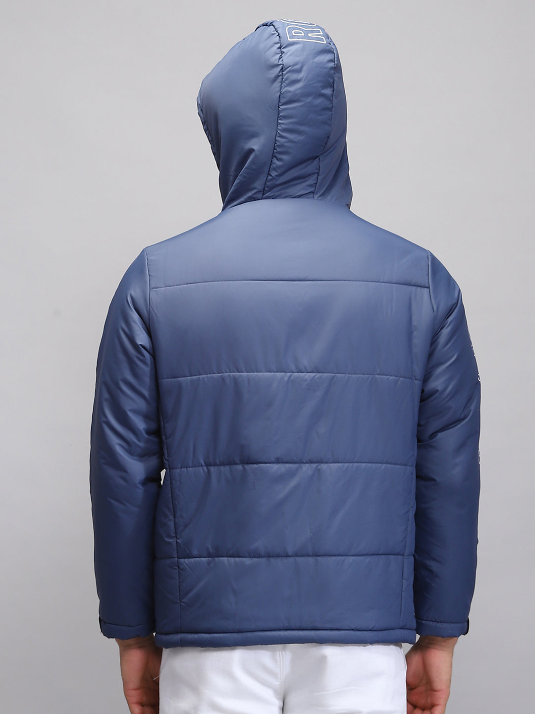 - Men Teal Blue Solid Hooded Full Sleeve Jacket