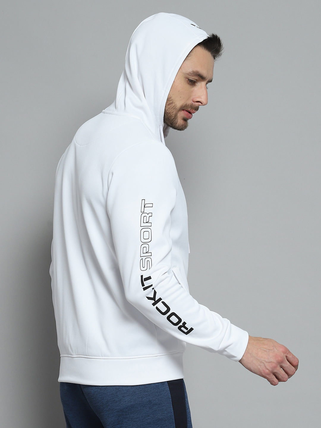 - Men White Printed Hooded Full Sleeve Sweatshirt