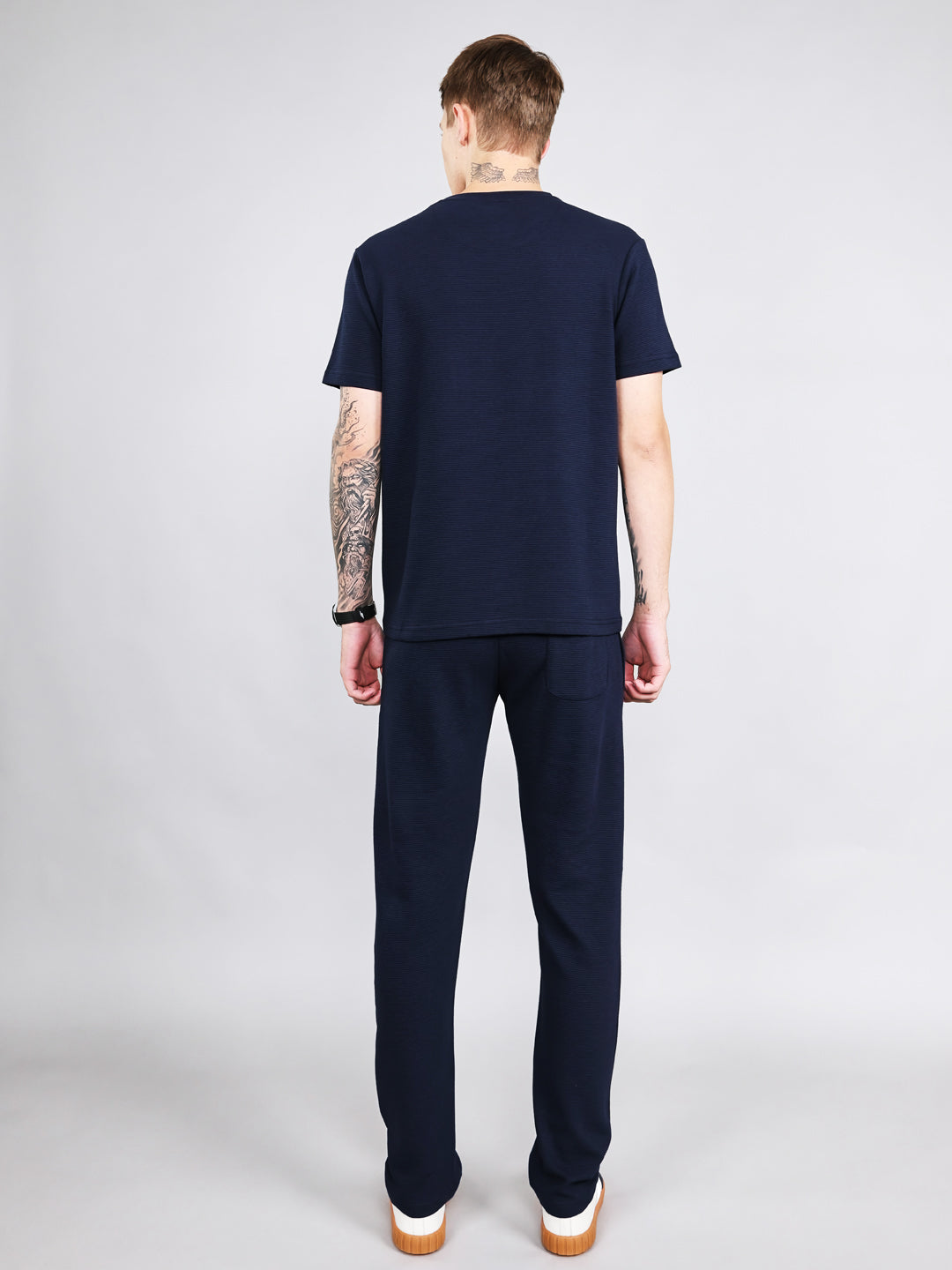 - Men Navy Blue Solid Round Neck Half Sleeve Cords Set