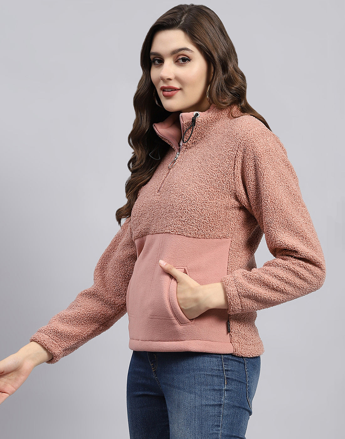 - Women Pink Solid Turtle Neck Full Sleeve Sweatshirt