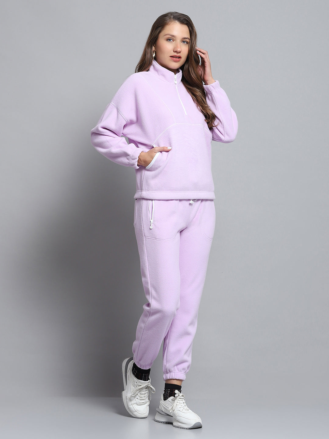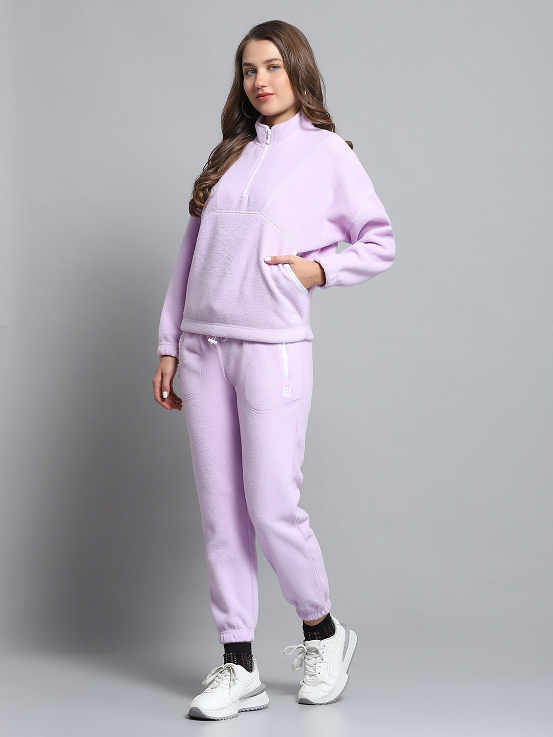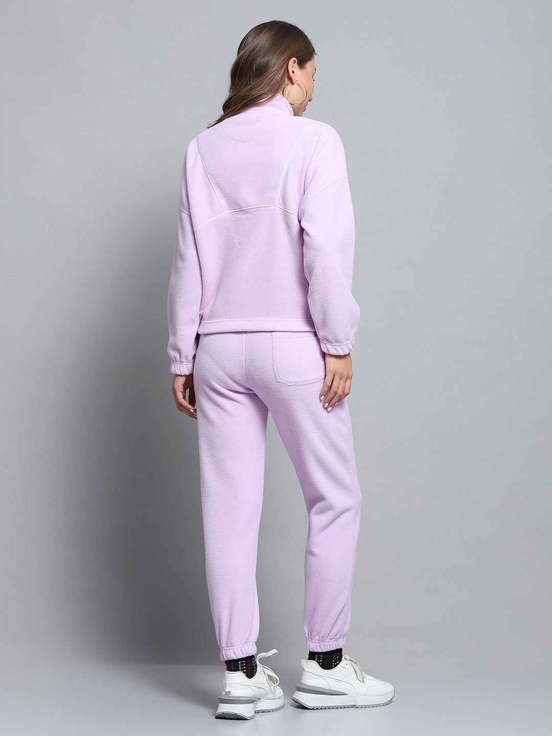 - Women Purple Solid Mock Neck Full Sleeve Tracksuit