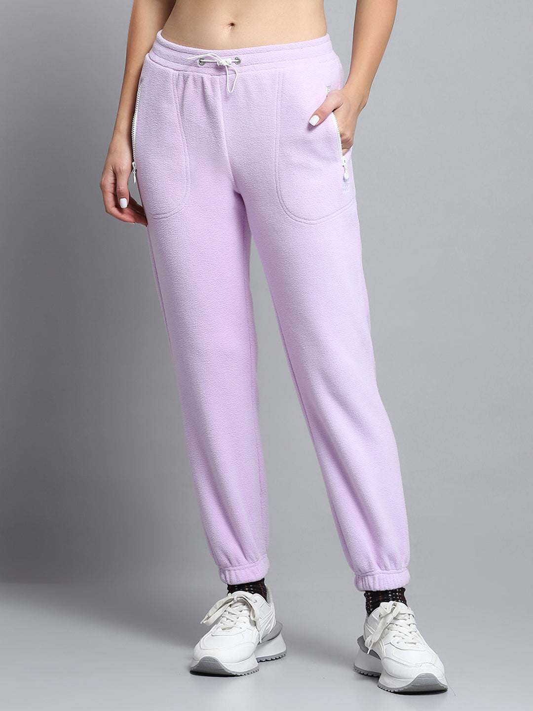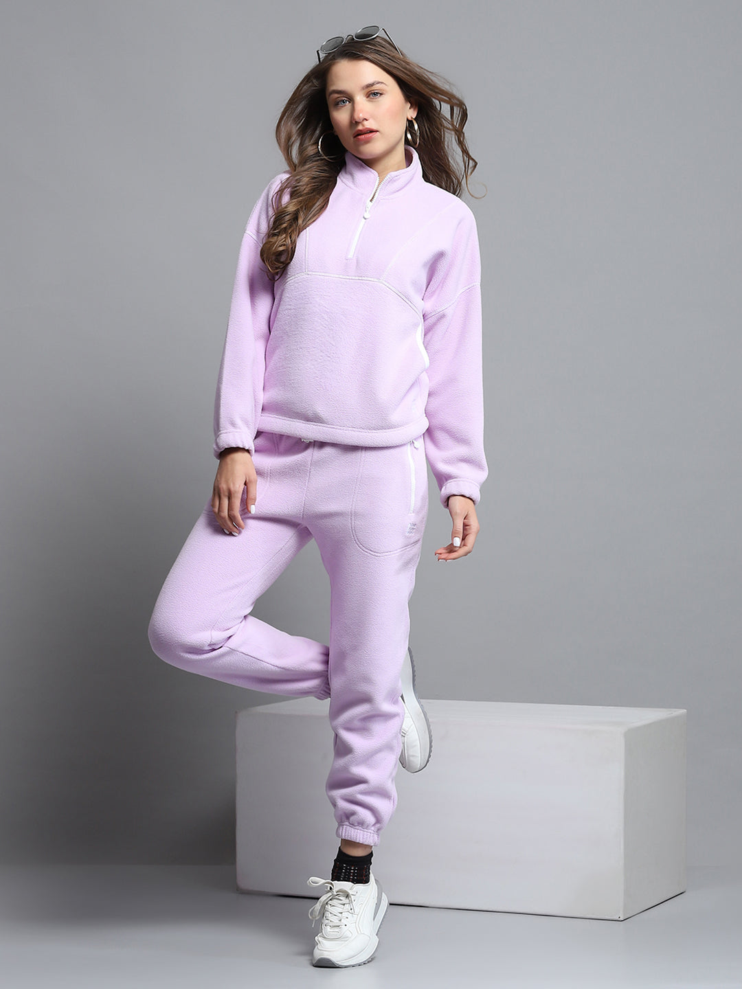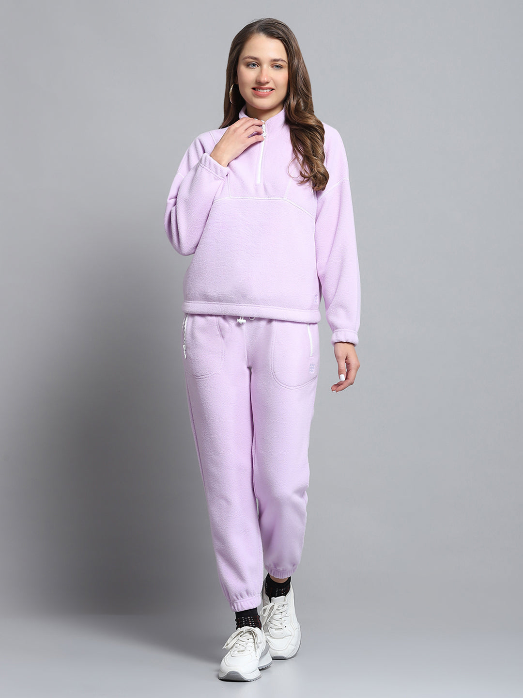- Women Purple Solid Mock Neck Full Sleeve Tracksuit