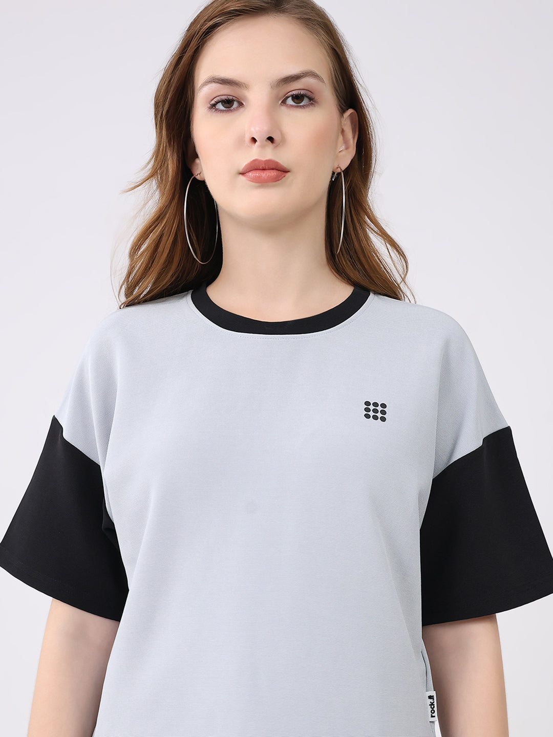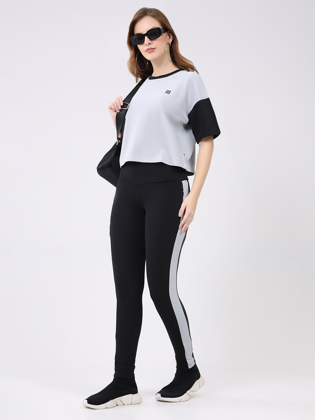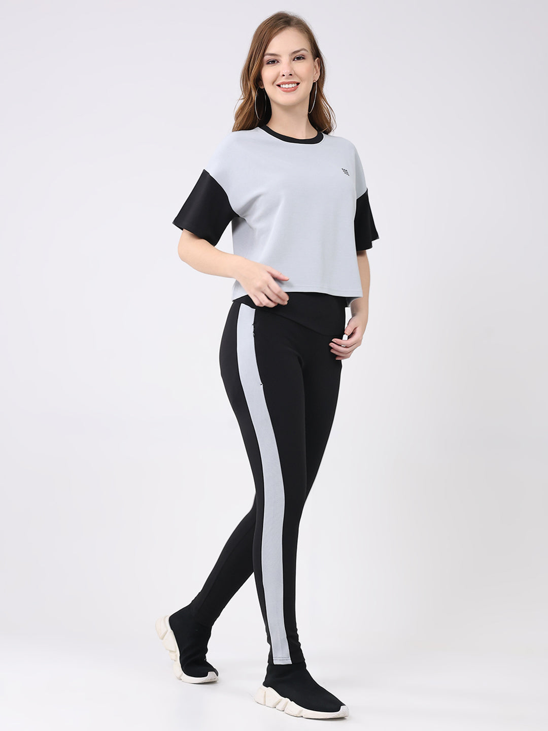 - Women Black & Grey Solid Round Neck Half Sleeve Cords Set