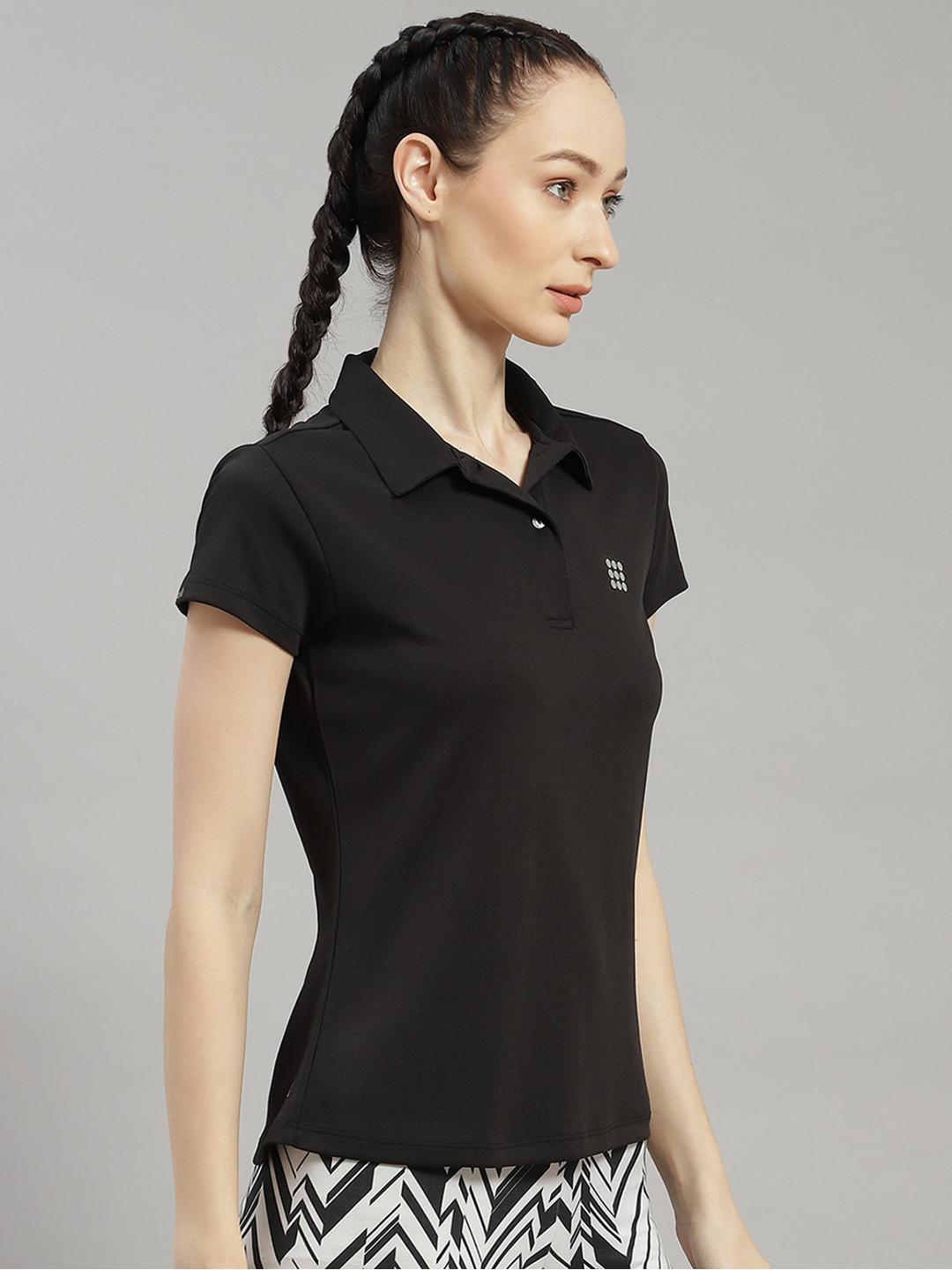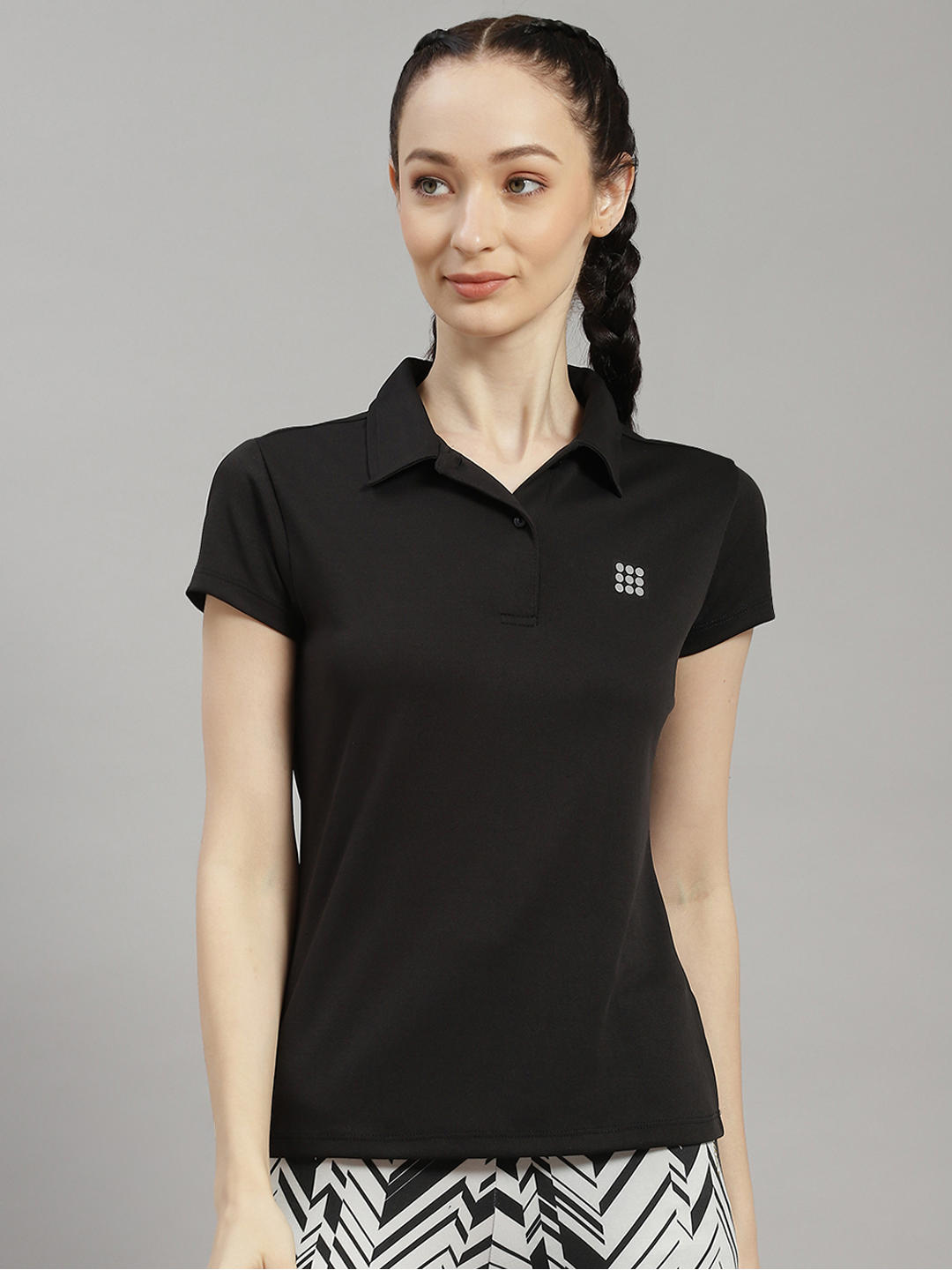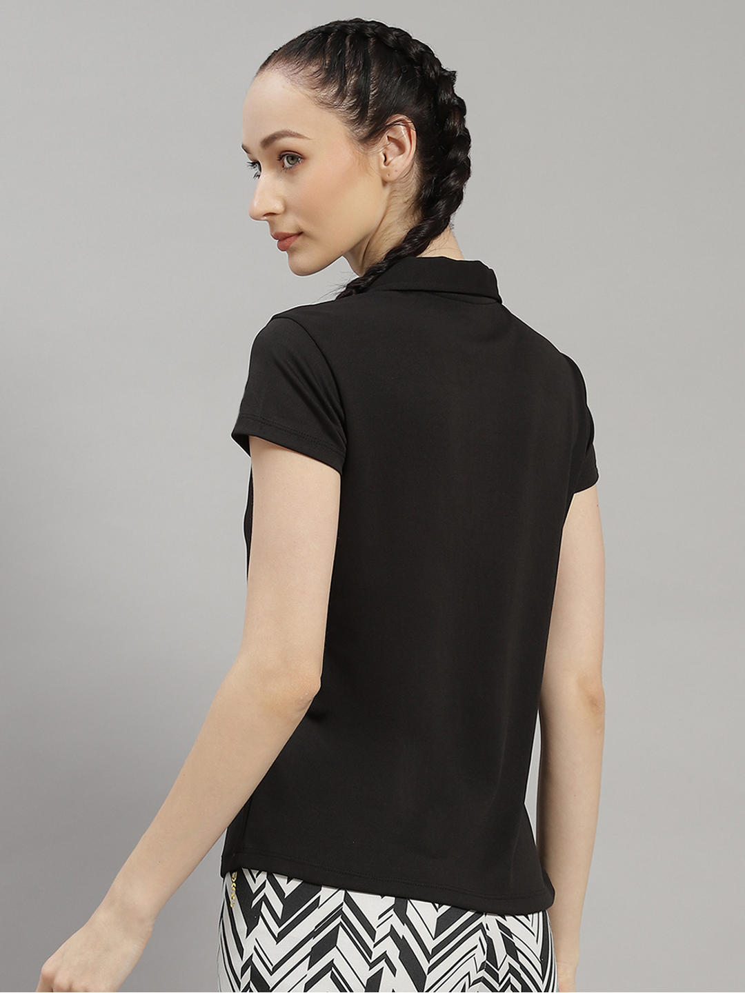 Women Polyester Blend Black Solid T-Shirt