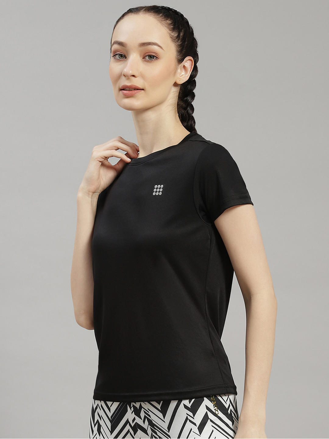 Women Polyester Blend Black Solid Top