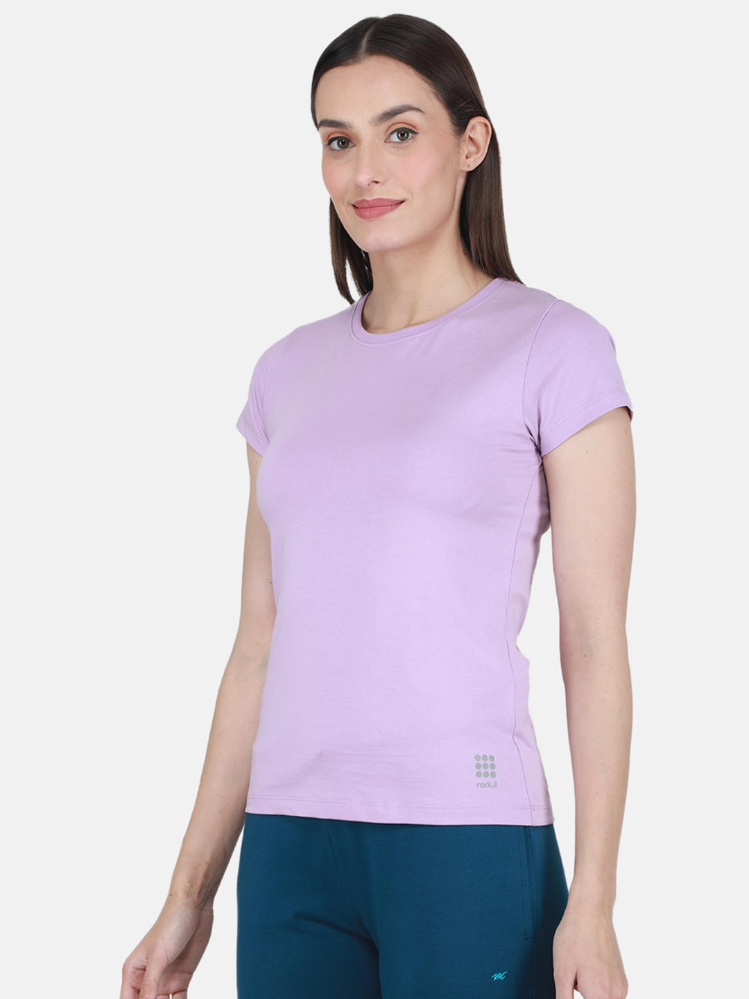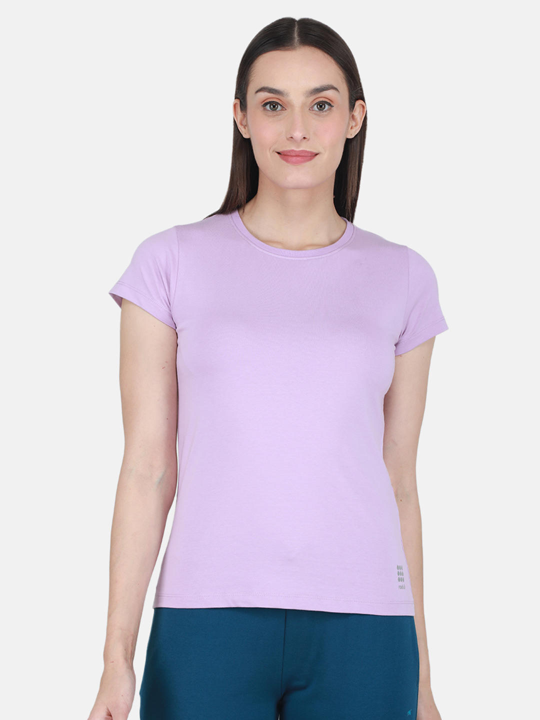 - Womens Cotton Blend Lavender Solid Round Neck Top