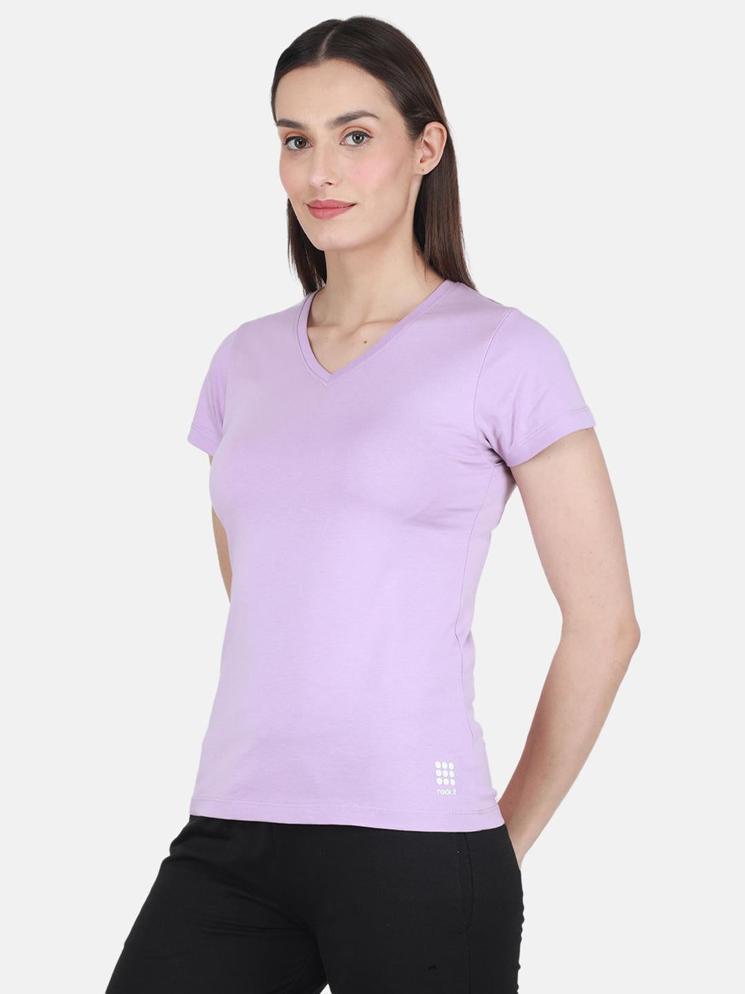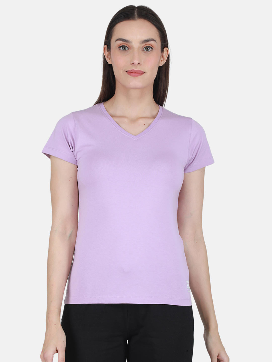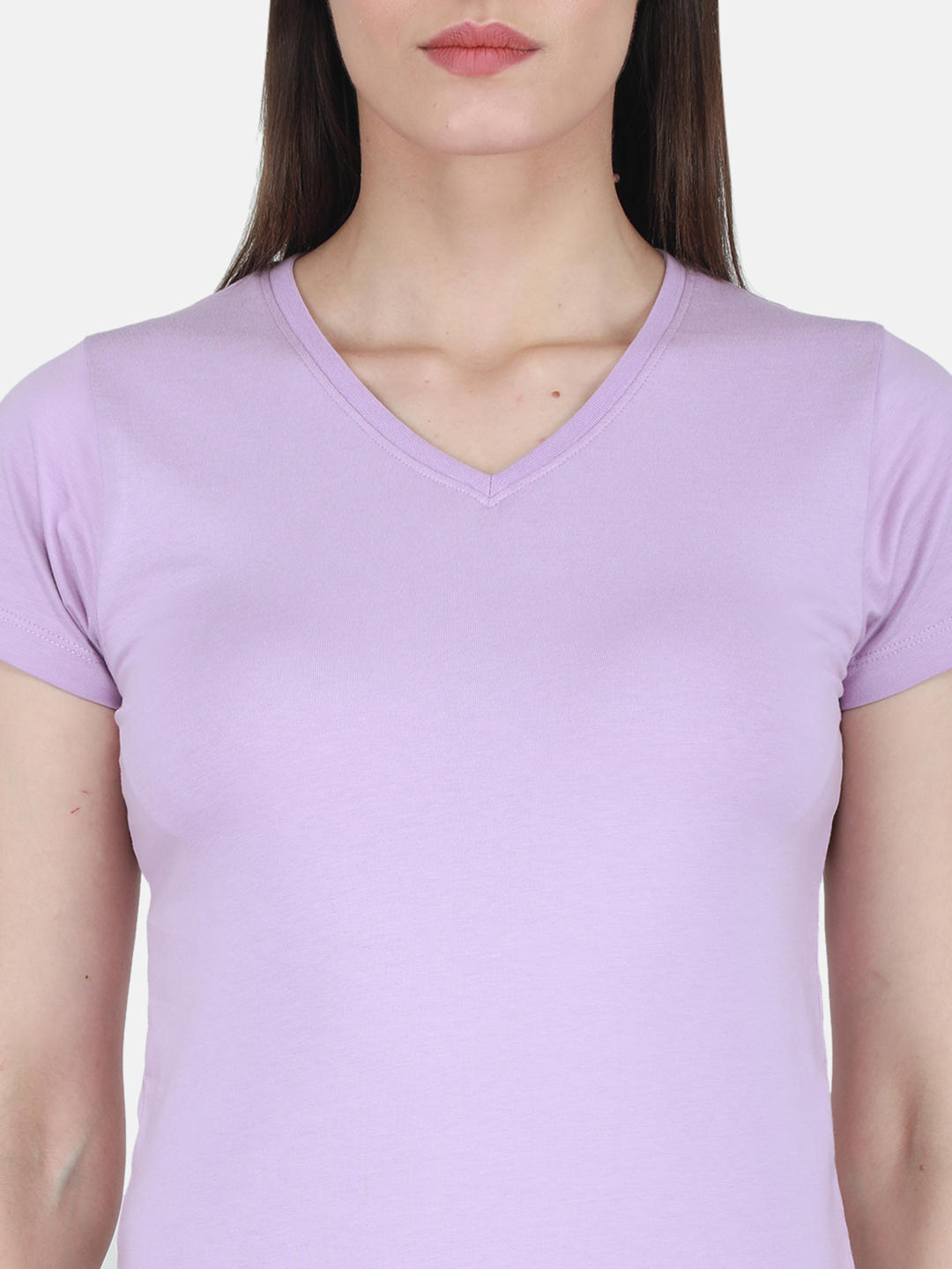- Womens Cotton Blend Lavender Solid V Neck Top