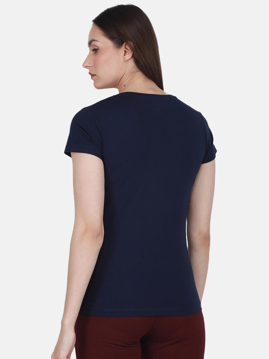 - Womens Cotton Blend Navy Blue Solid V Neck Top