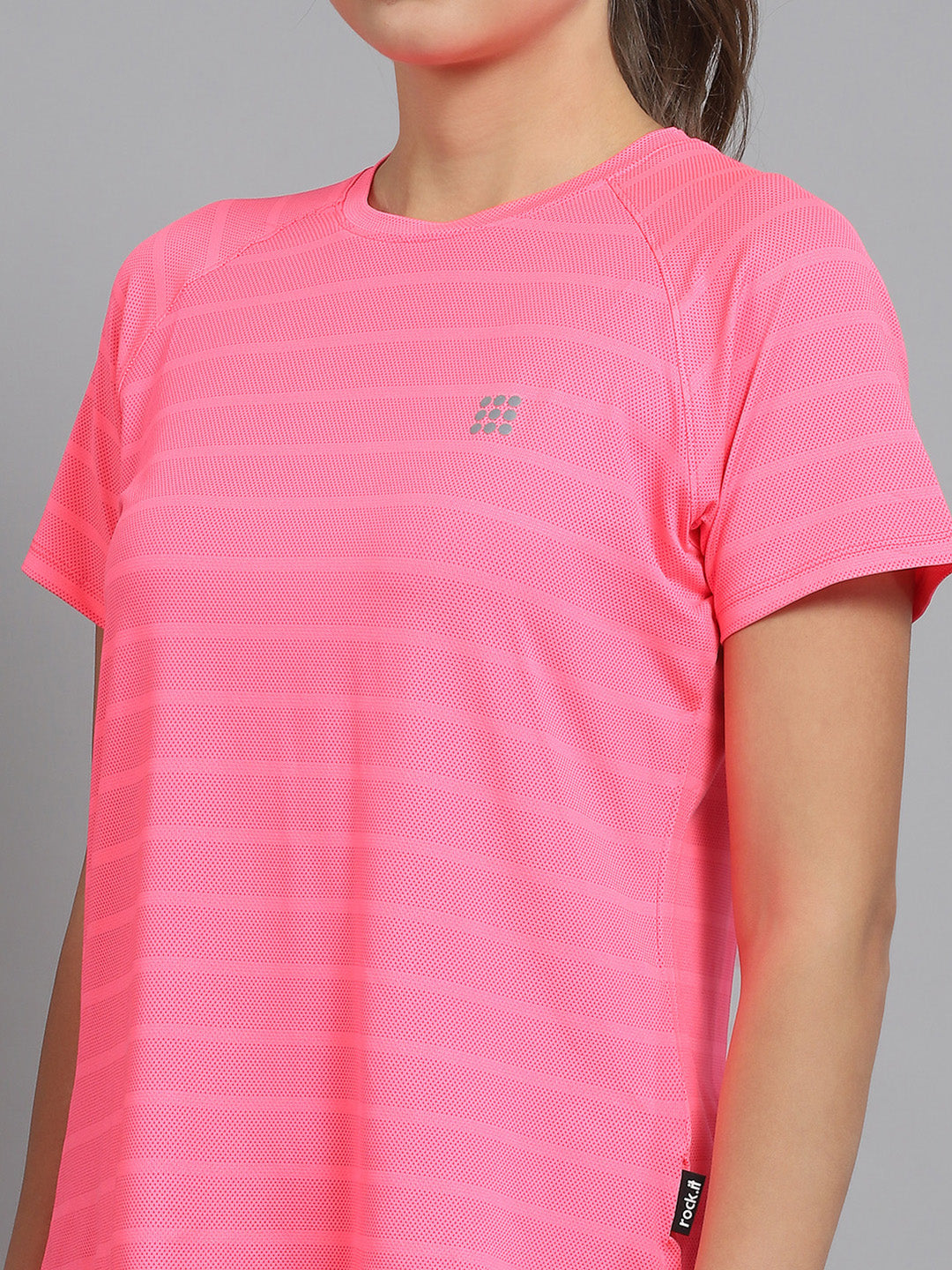 - Women Pink Self Design Round Neck Half Sleeve Top