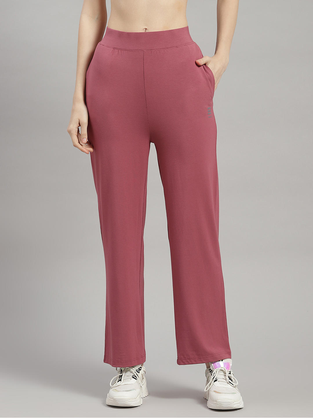 - Women Cotton Blend Rose Gold Solid Track Pant