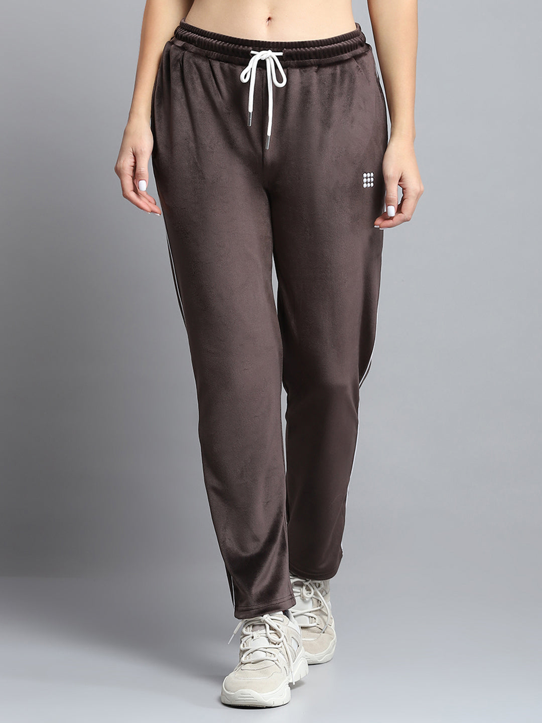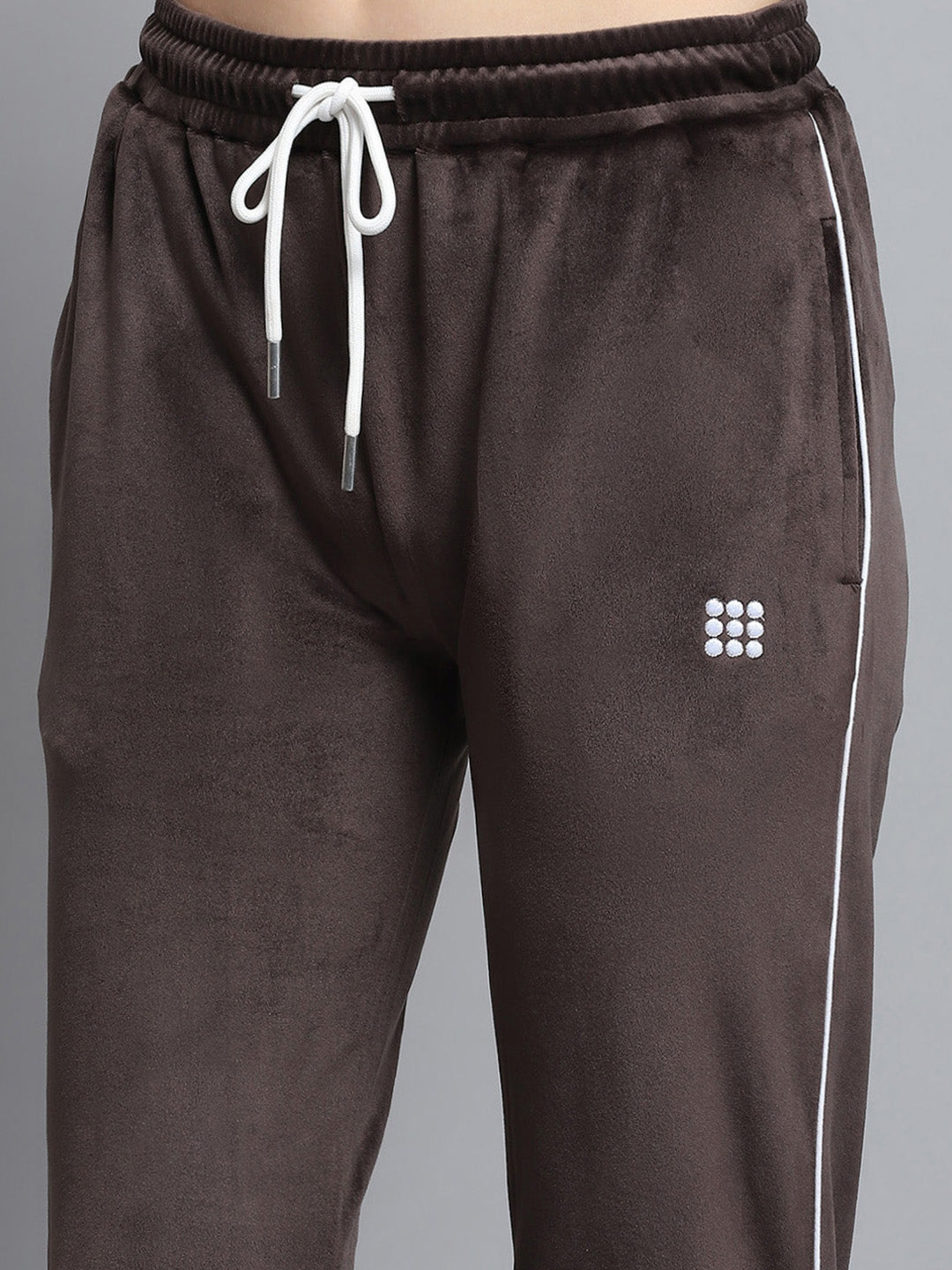 - Women Brown Solid Round Neck Full Sleeve Tracksuit