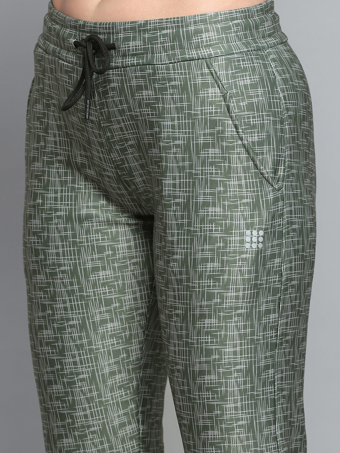 - Women Olive Printed Mock Neck Full Sleeve Tracksuit